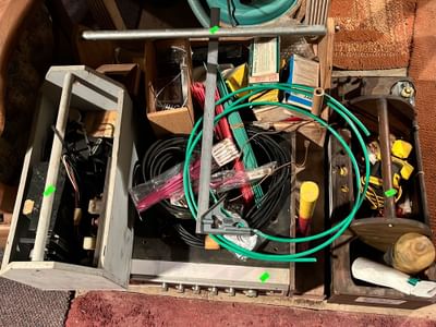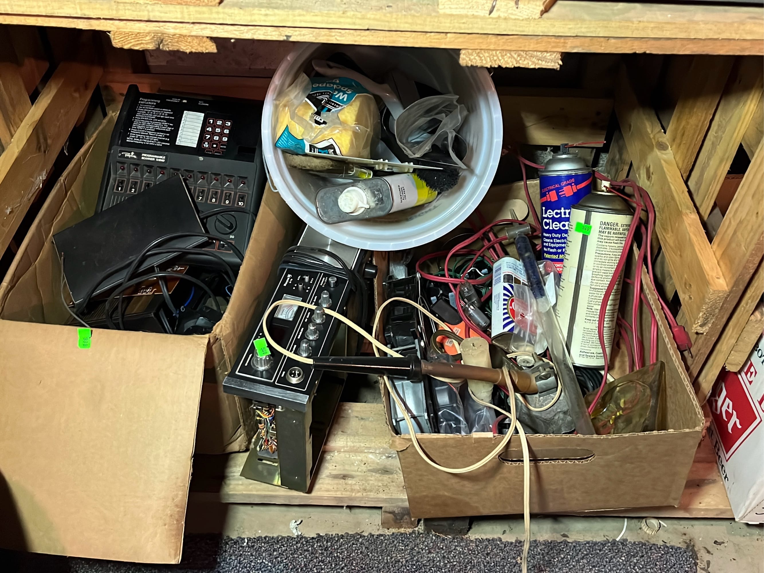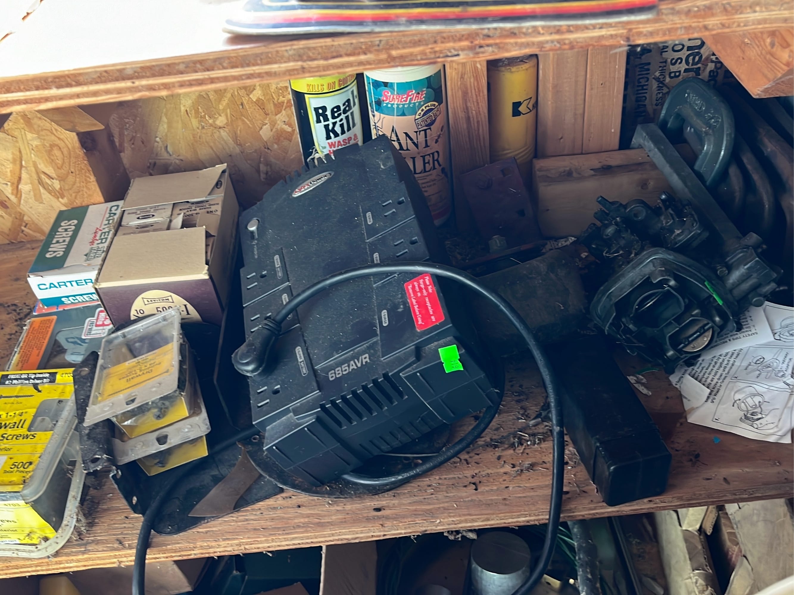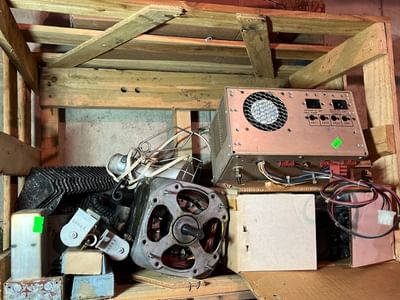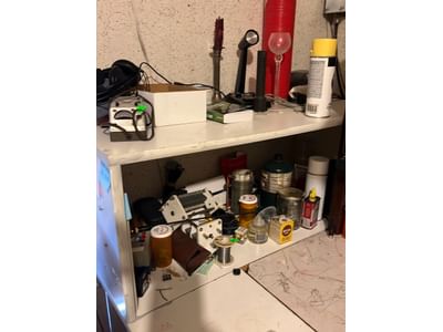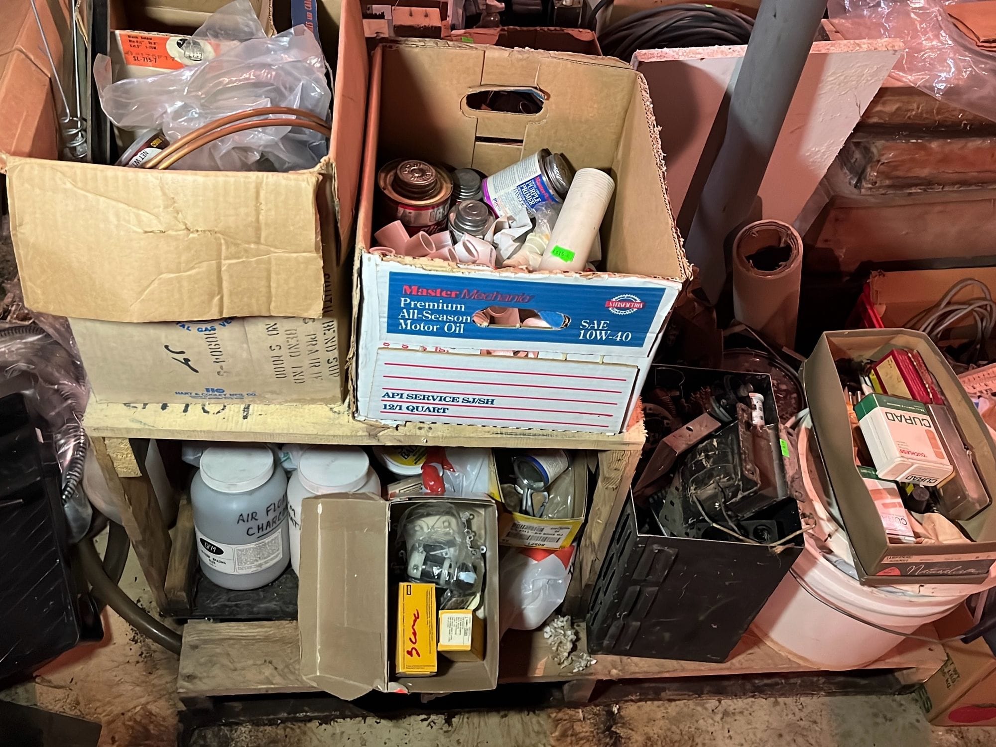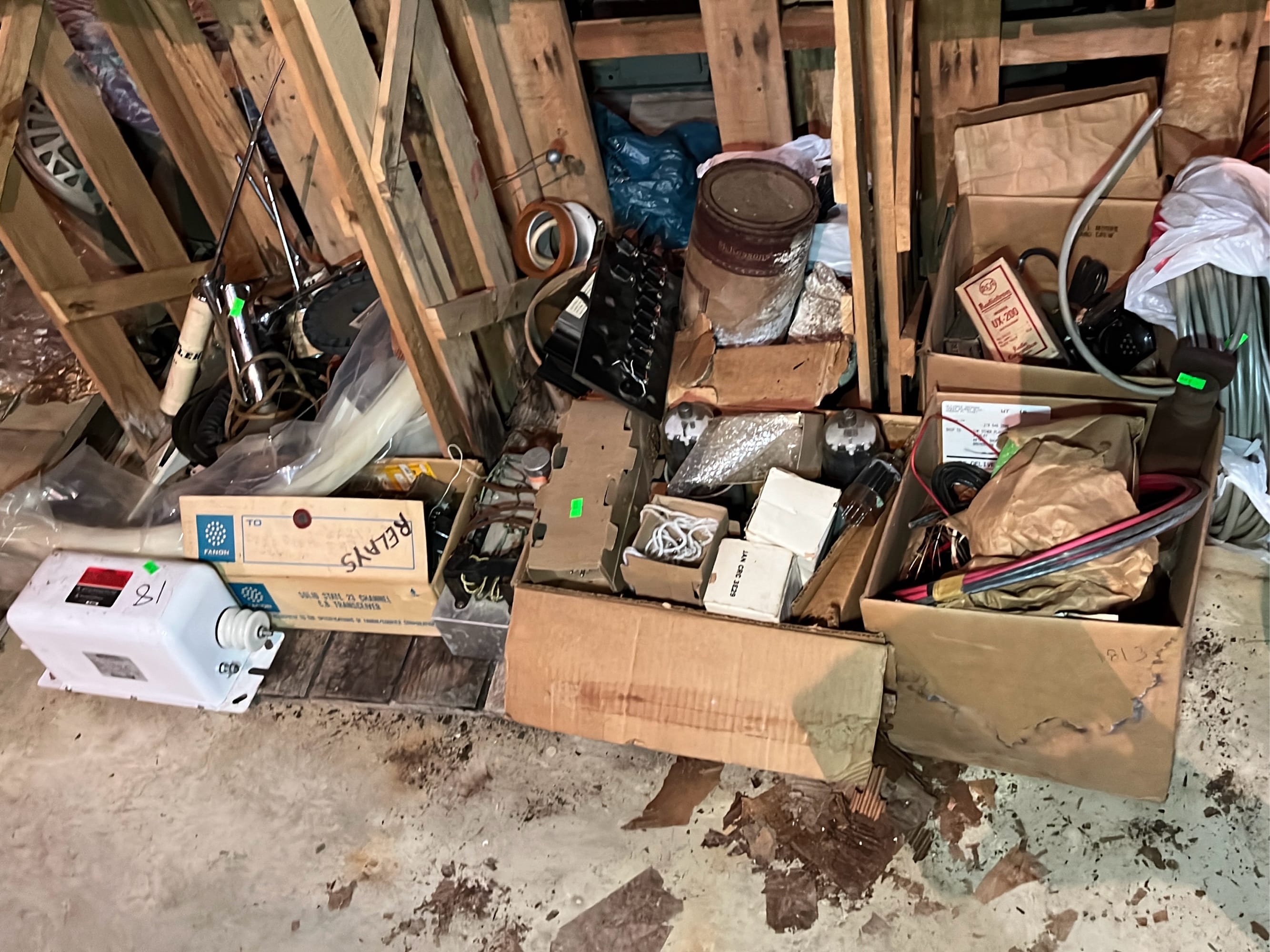 2000 RC airplane, parts, shelving, chemicals, Contents of room as shown in pictures - buyer assumes responsibility for removal as the area deteriorated
