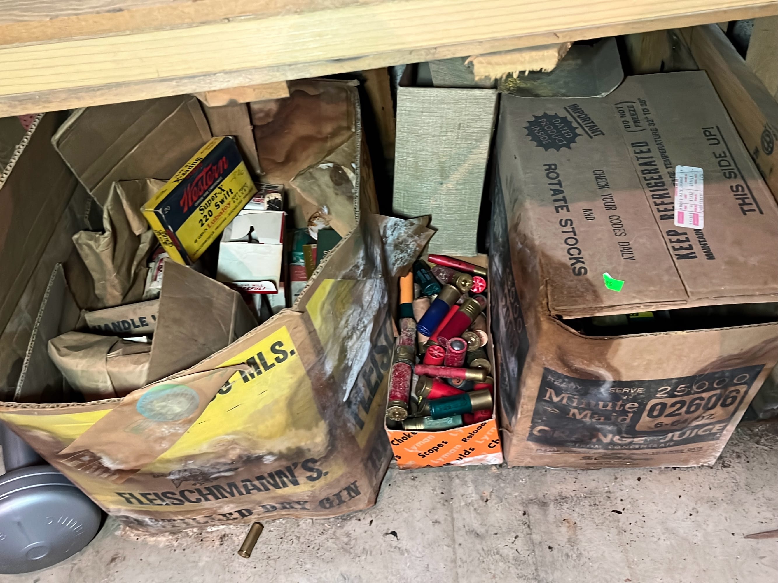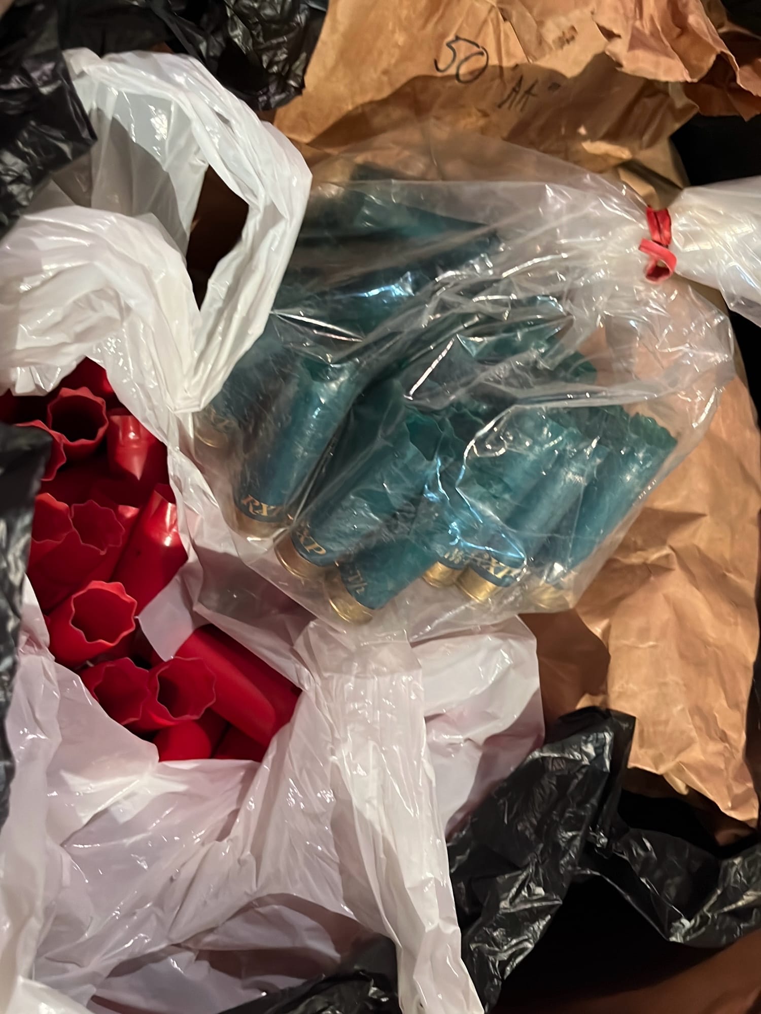 1032 12 ga shot shells, boxes are wet, reloads, approximately 100 shells