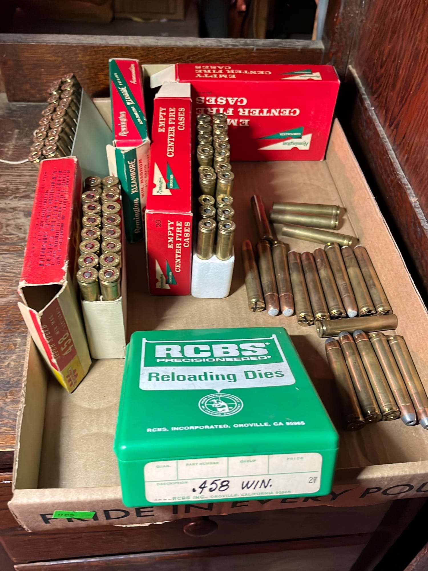965 .458 Win die, Ammo .458 re loads - approx 25ct plus shell casings