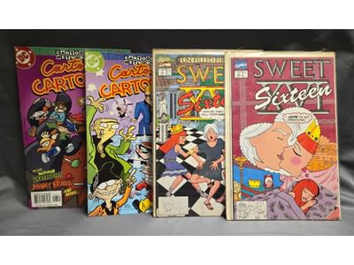 4710 2- DC Cartoon Cartoons and 2- Marvel Sweet Sixteen comic books