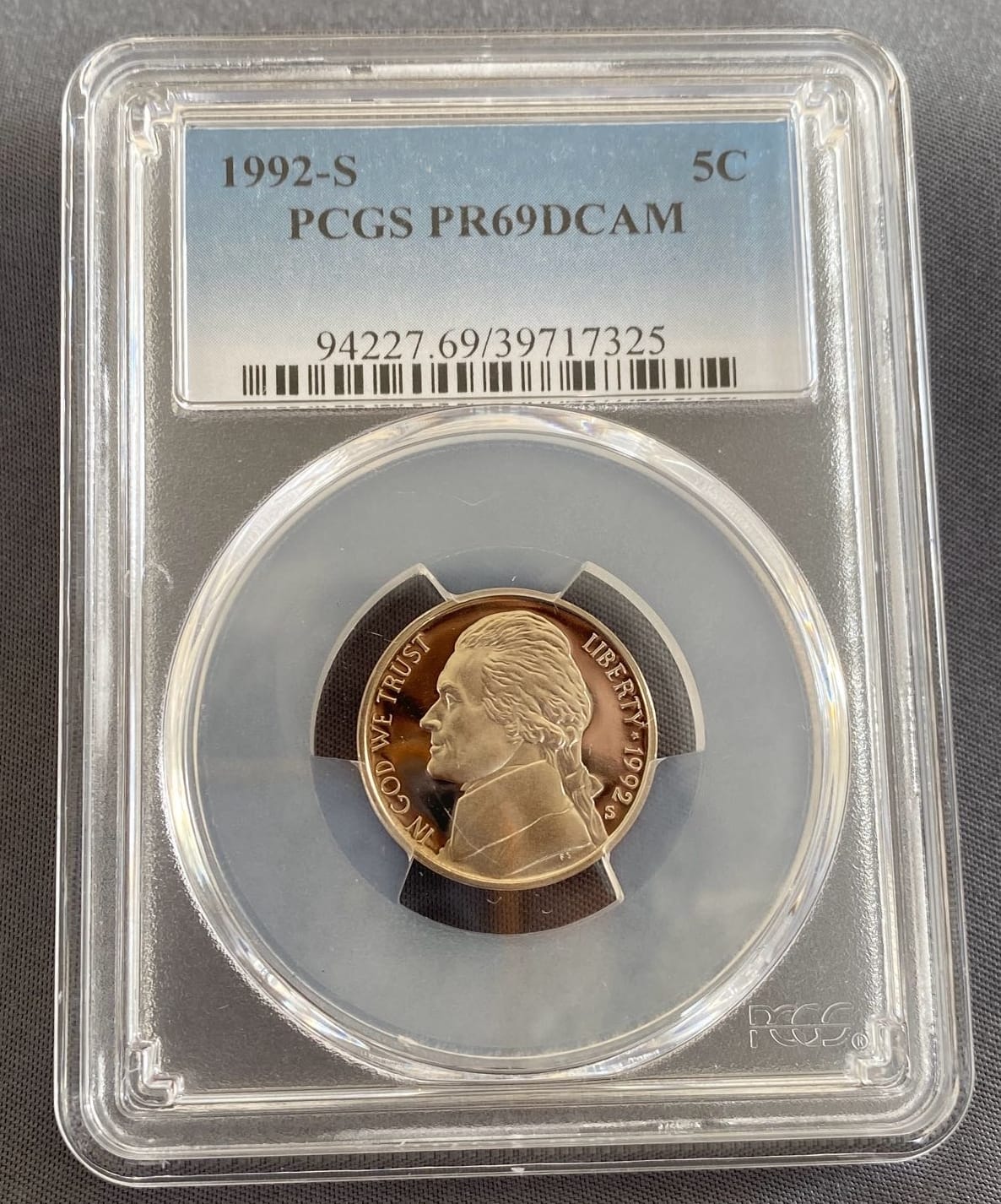 6000 1992-S Jefferson Nickel PCGS PR69DCAM