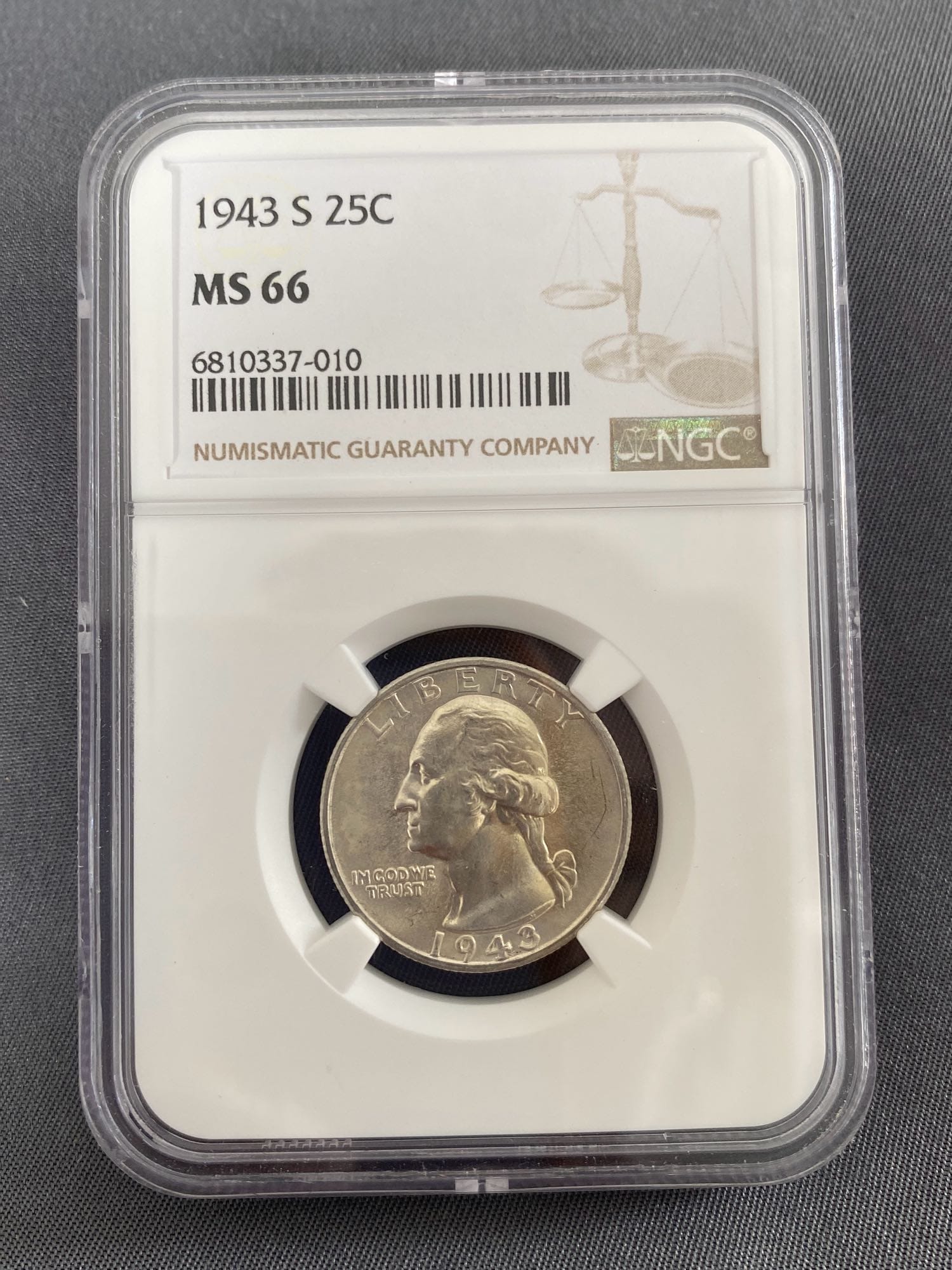 6058 1943-S Washington Quarter MS 66