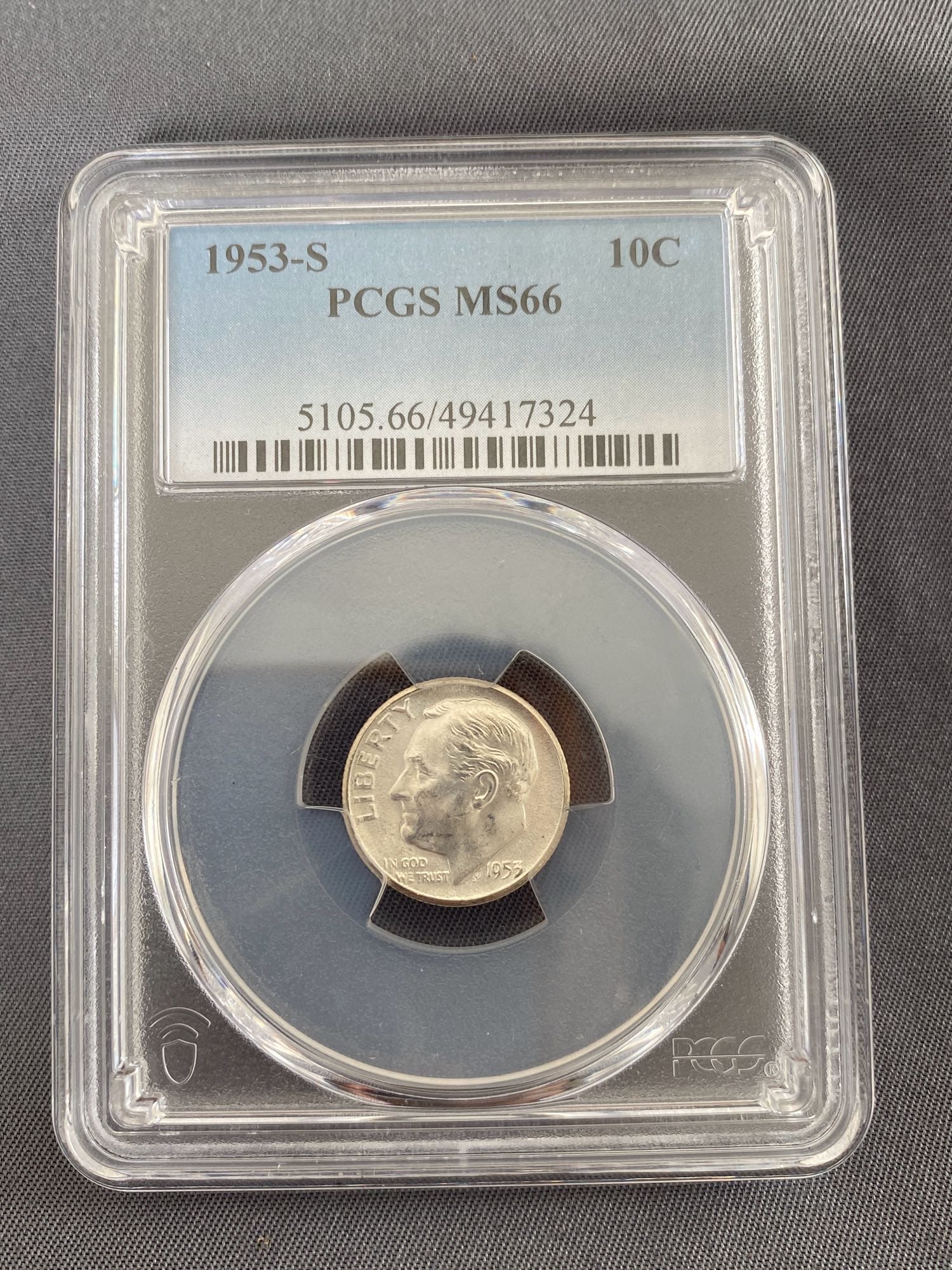 6059 1953-S Roosevelt Dime PCGS MS66
