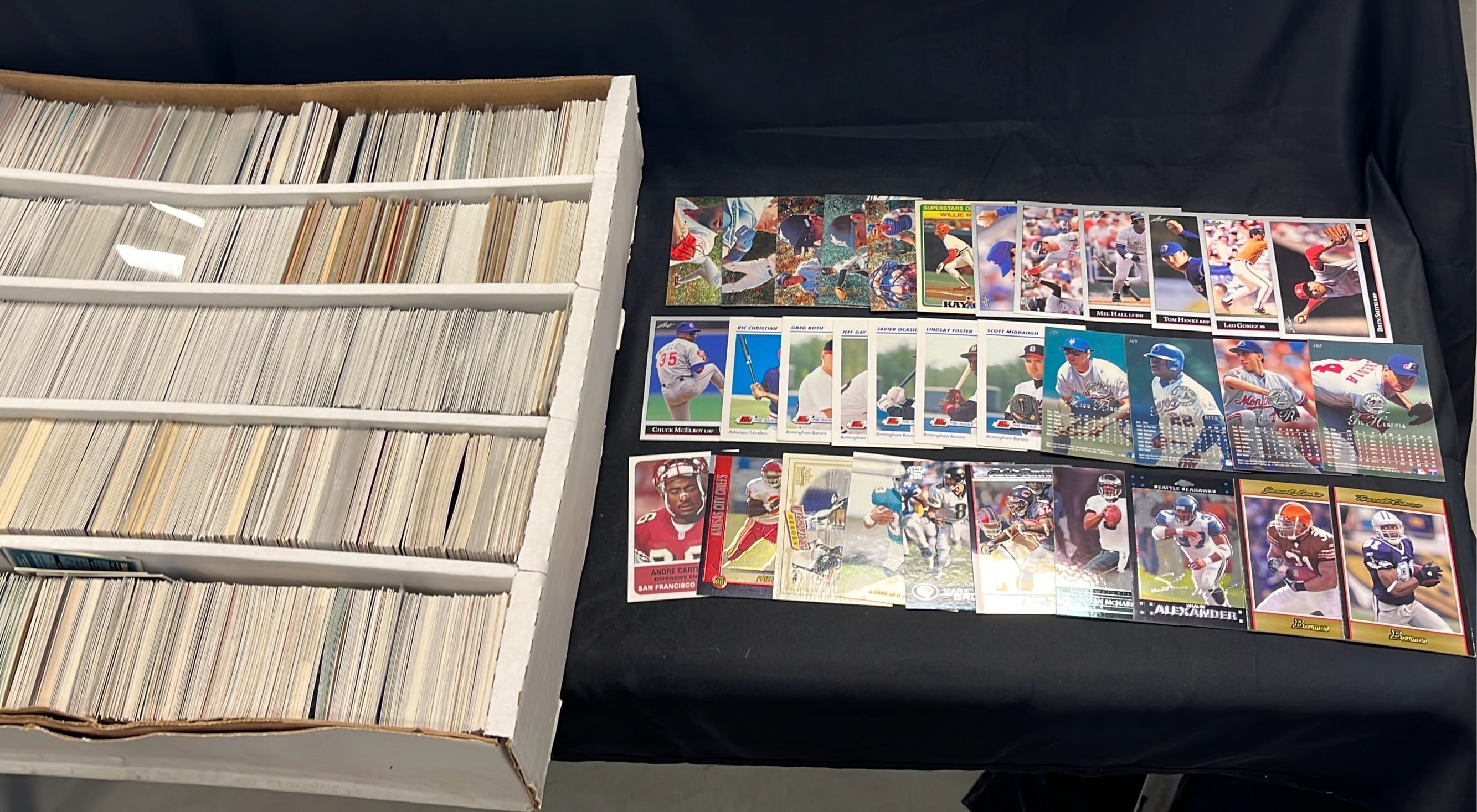 6233 Baseball/Football Card Assortment inc. Andre Carter, Shaun Alexander, Leo Gomez, Greg Roth