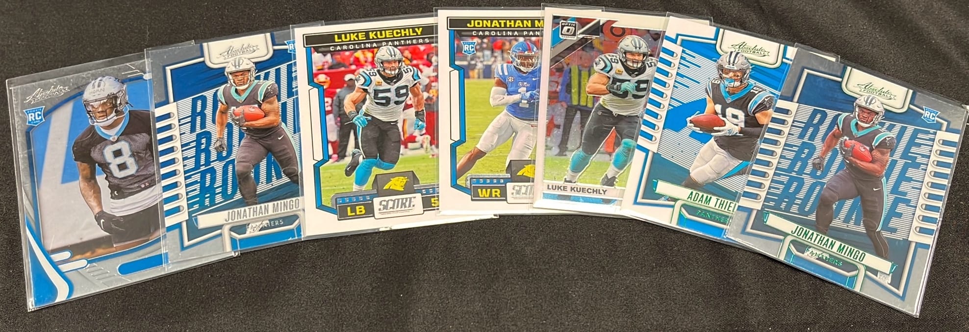 6238 Panthers Football Card Assortment inc Luke Kuechly, Jonathan Mingo, Jaycee Horn
