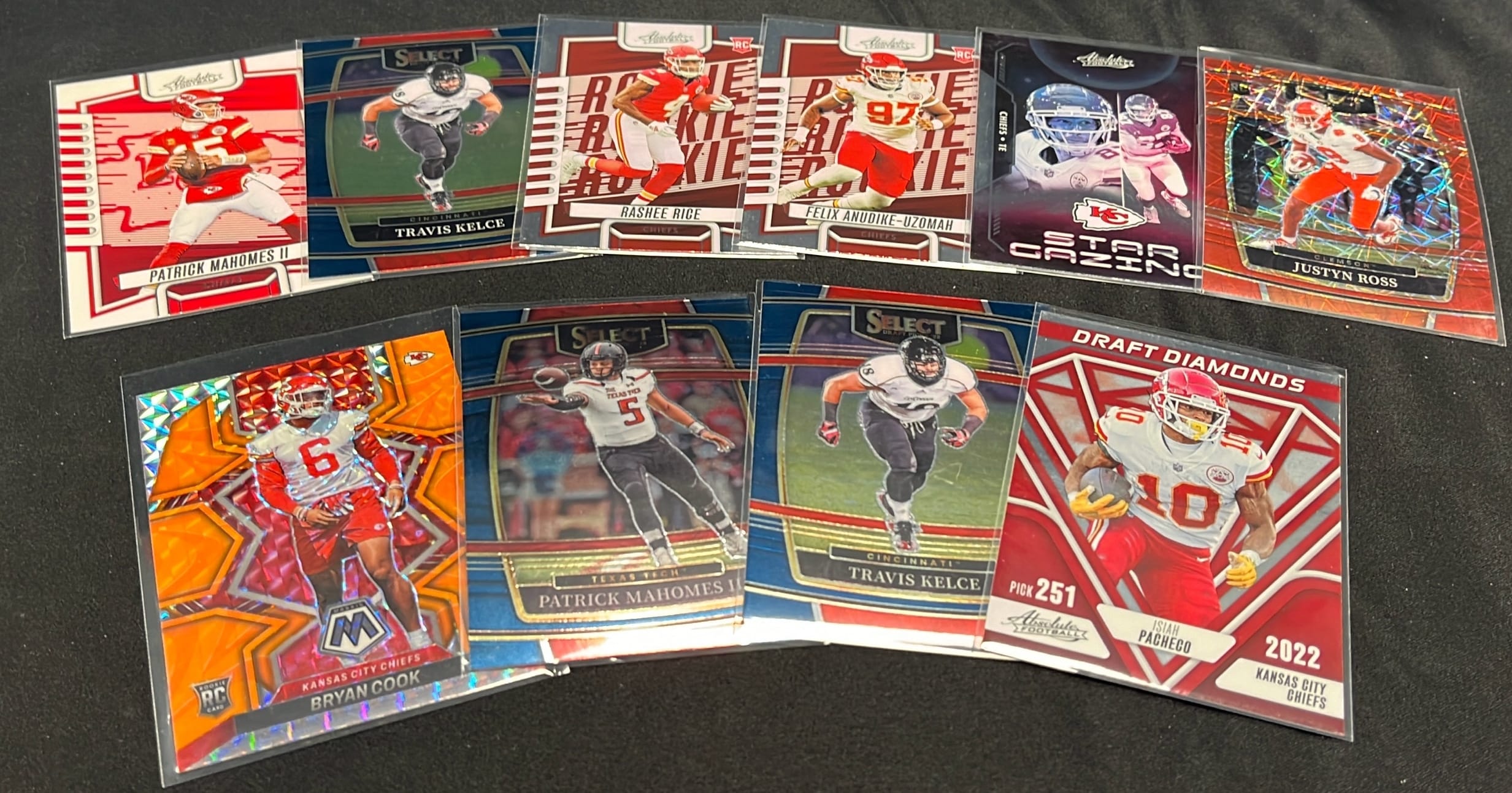 6242 Chiefs Football Card Assortment inc Justyn Ross, Travis Kelce, Patrick Mahomes II