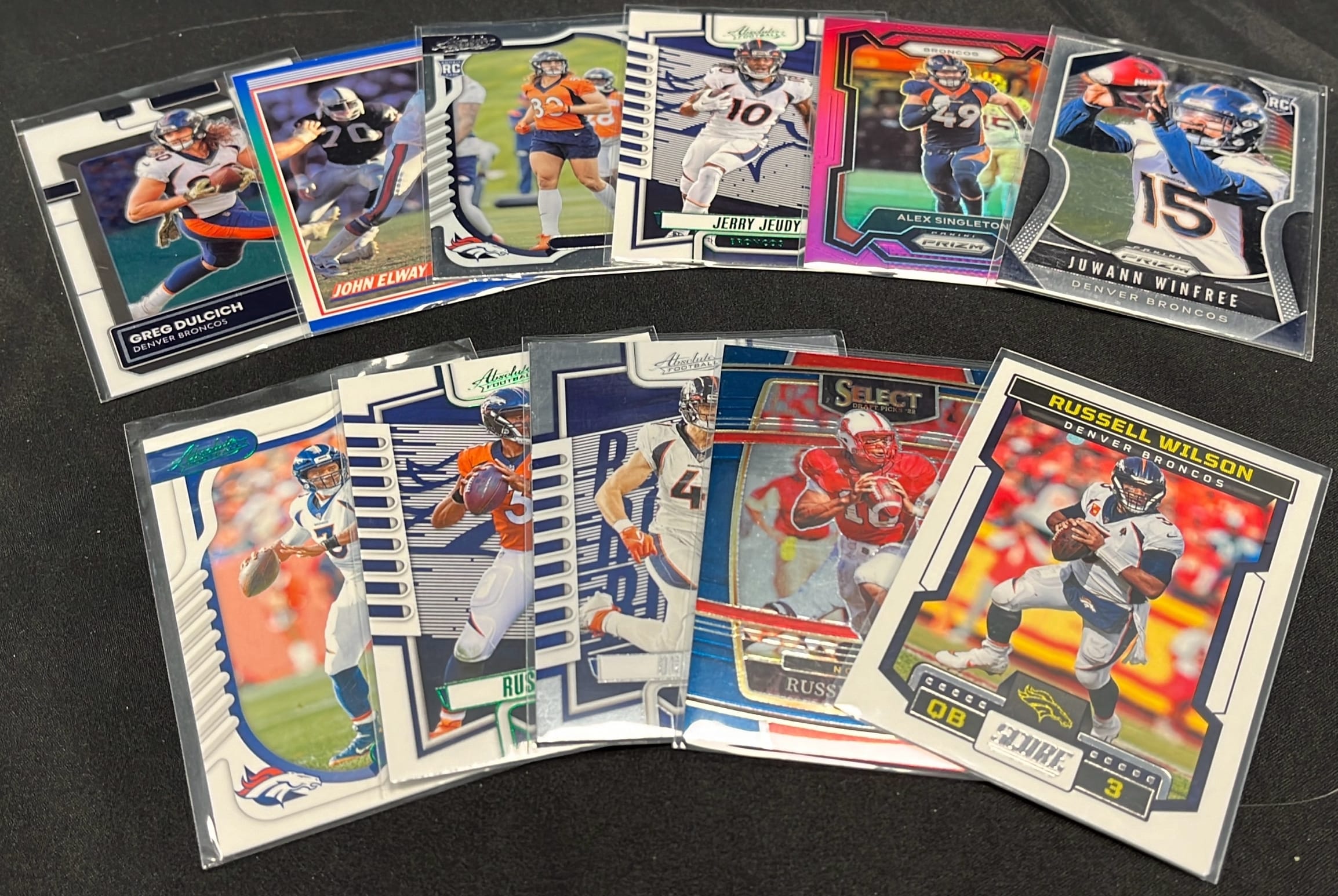 6247 Broncos Football Card Assortment inc Russell Wilson, Juwann Winfree, Jerry Jeudy