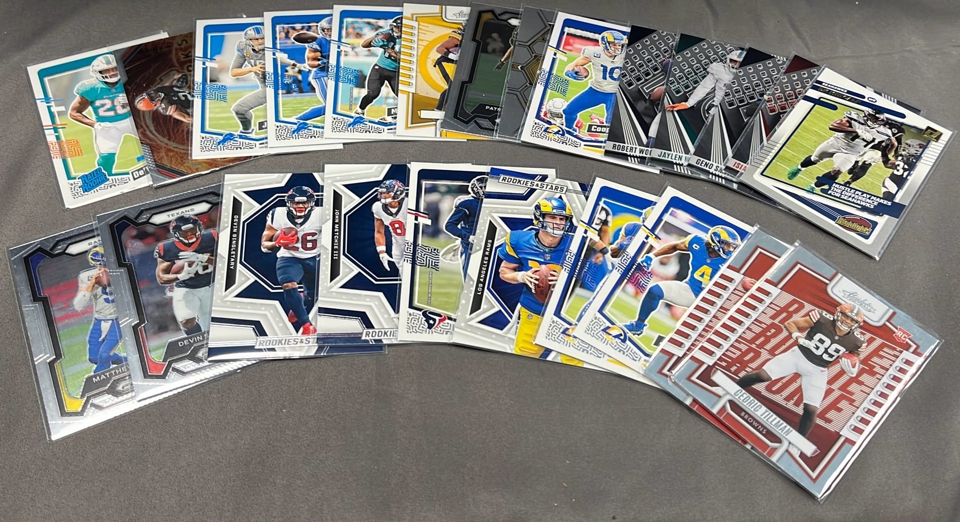 6256 Football Card Assortment inc Cedric Tillman, De'von Achane, Matthew Stafford