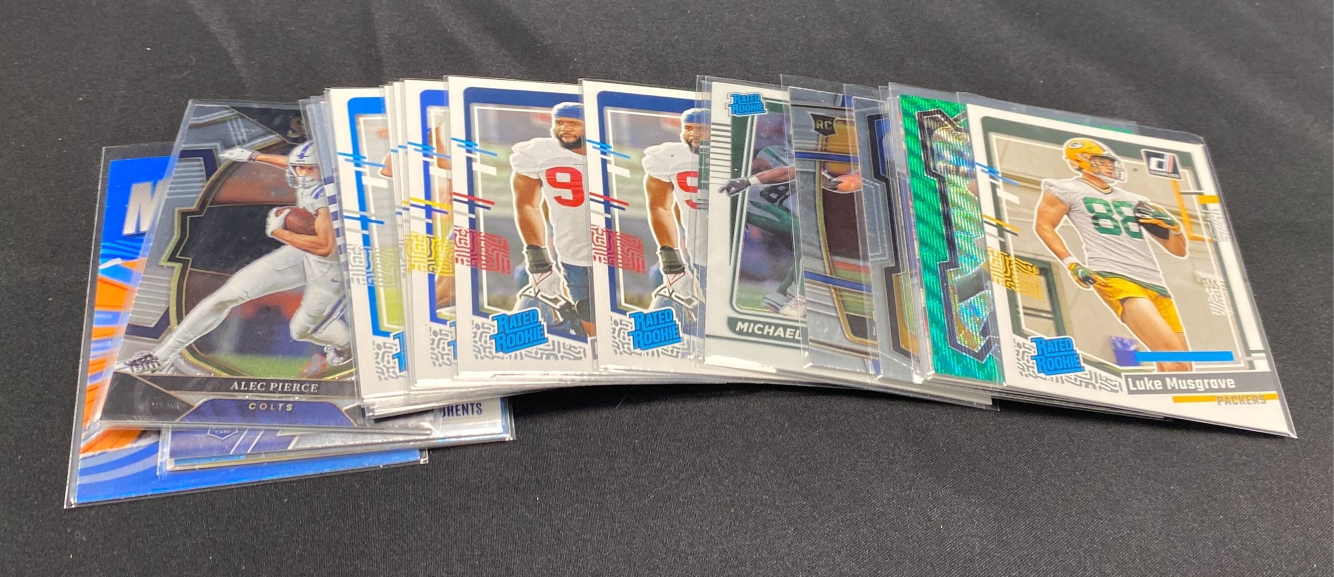 6261 Football card assortment inc Rashawn Slater, Michael Carter, Luke Musgrave