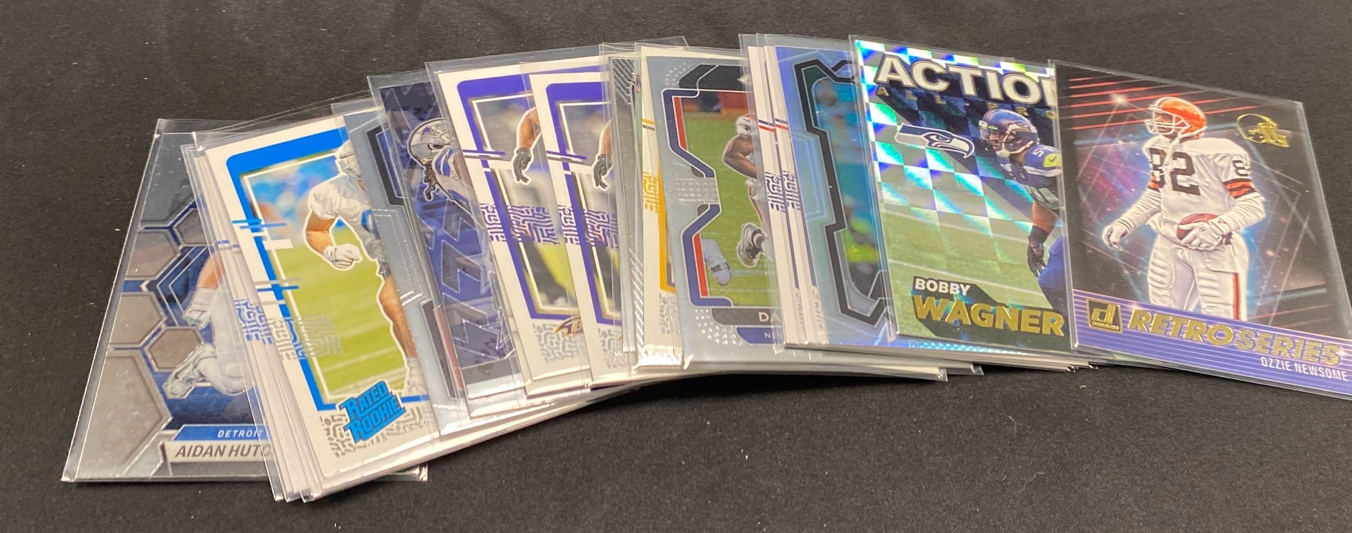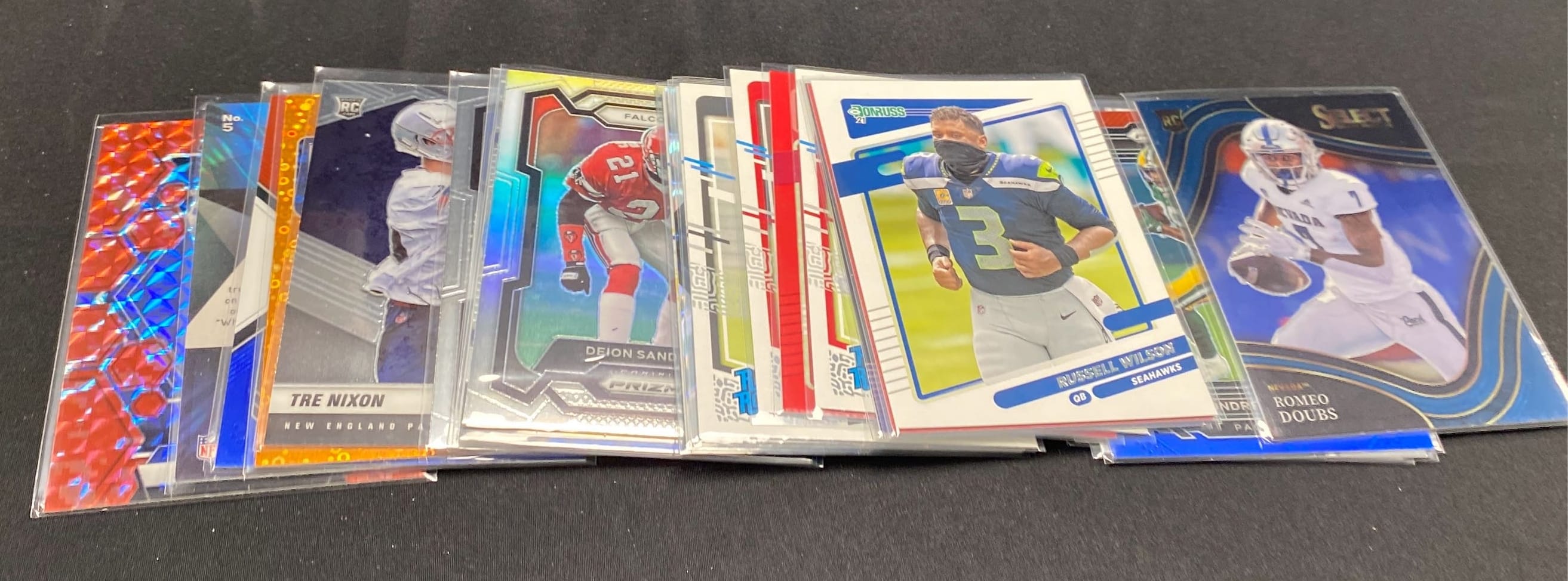 6272 Football card assortment inc Nahshon Wright, Luke Schoonmaker