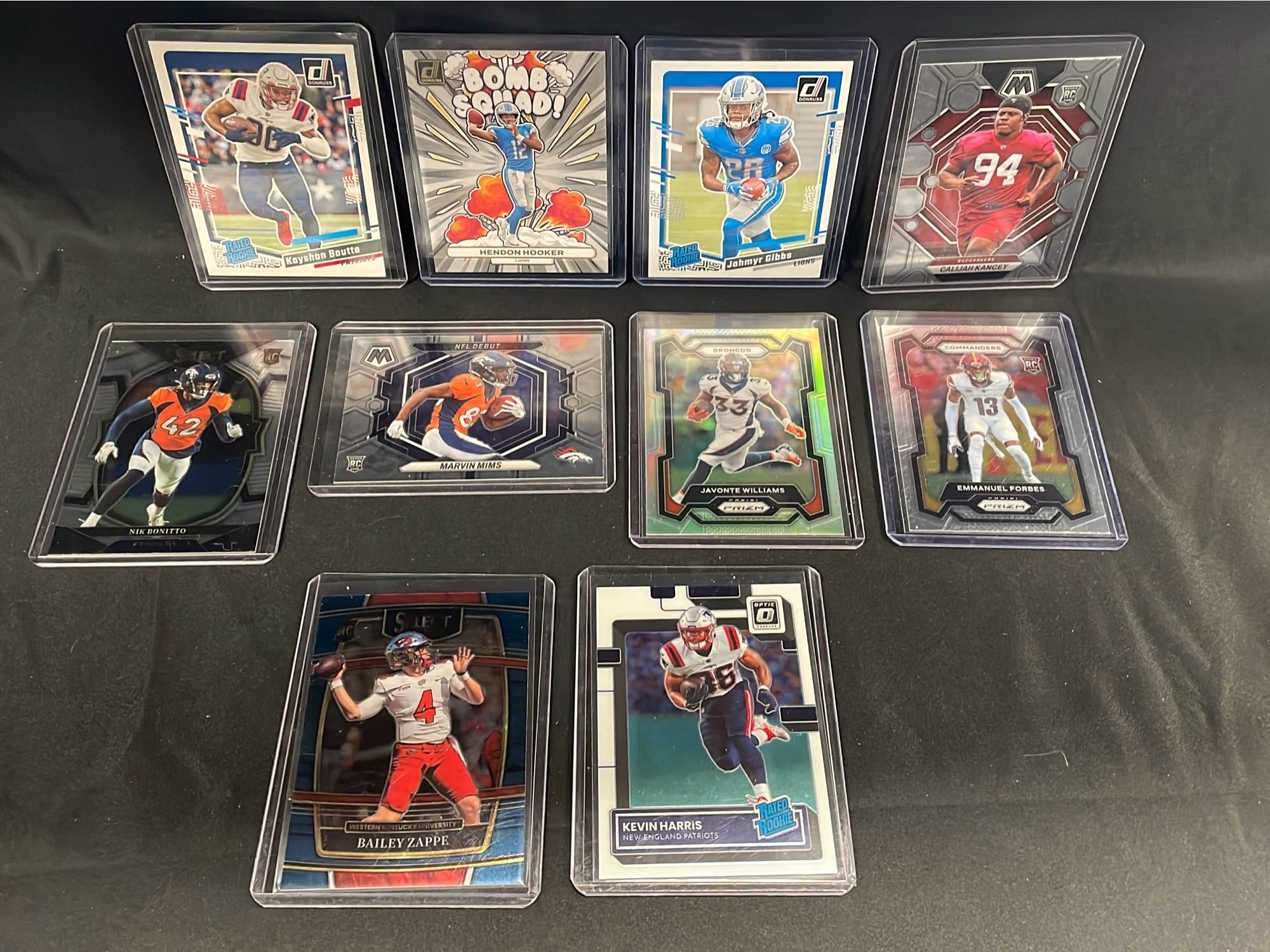 6308 10 - 2022, 2023 Panini Football Cards Including: Bailey Zappe, Marvin Mims, Jahmyr Gibbs