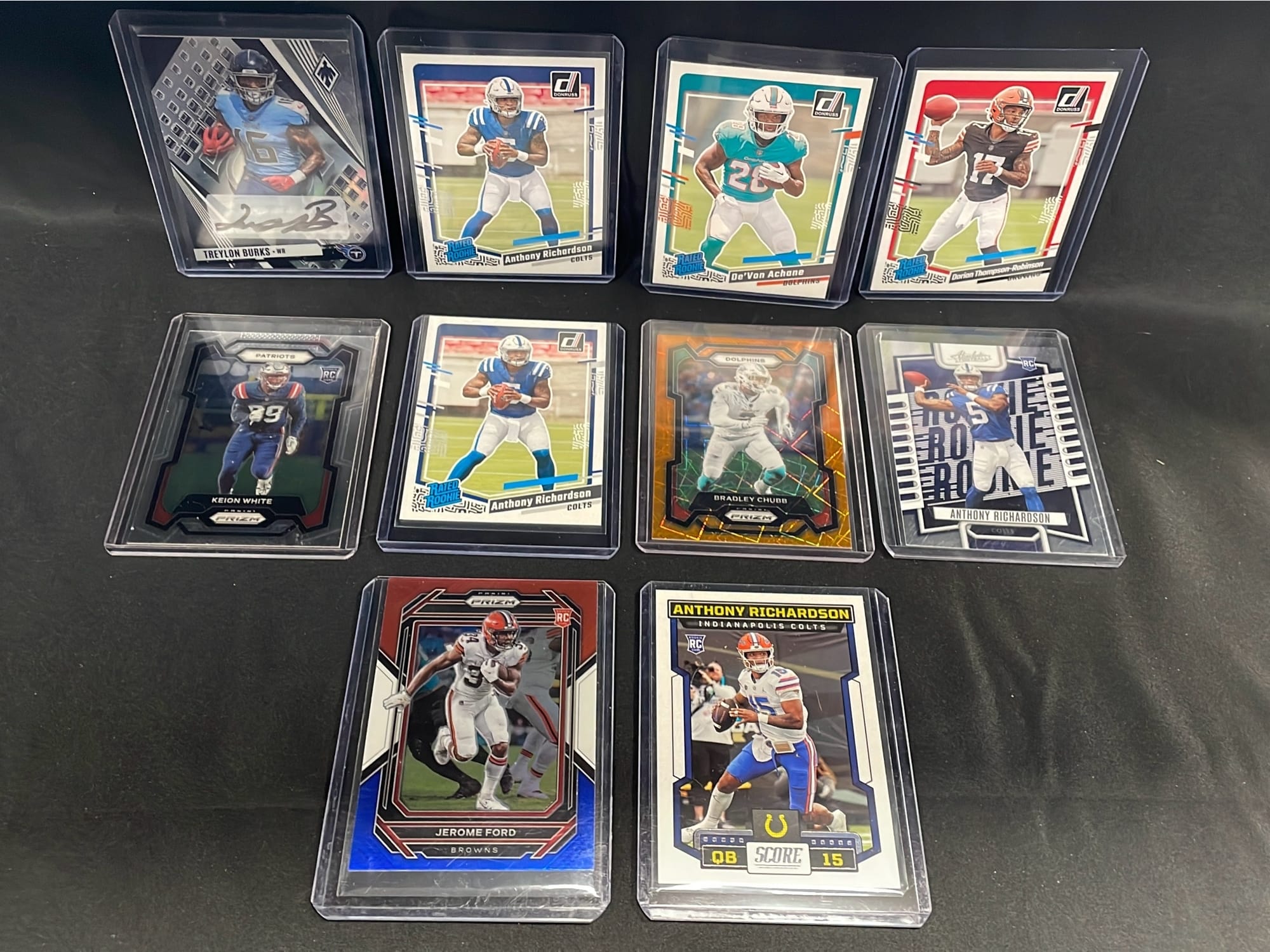 6315 10 - 2022, 2023 Panini Football Cards Including: Autograph of Treylon Burk, and Rookies Richardson, Achane, Thompson-Robinson
