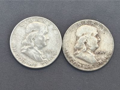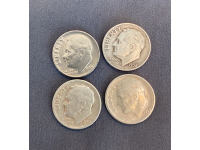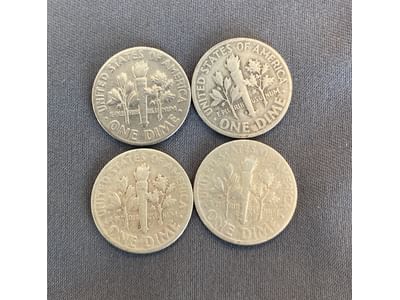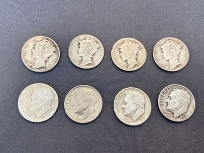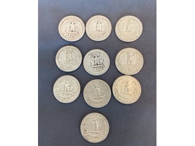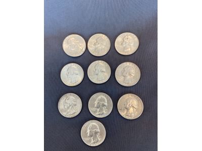 4057 2 Washington Quarters, 1 Mercury Dime, 5 Roosevelt Dimes, 1 Jefferson Nickel