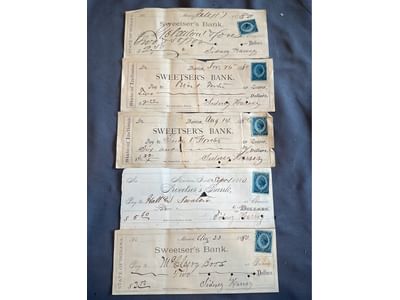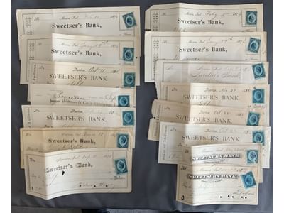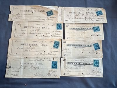 2089 Sweetser's Bank Checks with 2 Cent Stamps