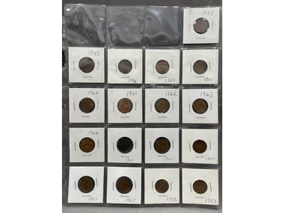4064 24 Lincoln Cents in torn Lincoln Cent Book, 39 Lincoln Wheat Cents, various years