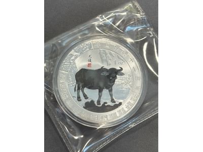 4130 China Lunar Zodiac Ox Colored Silver Round