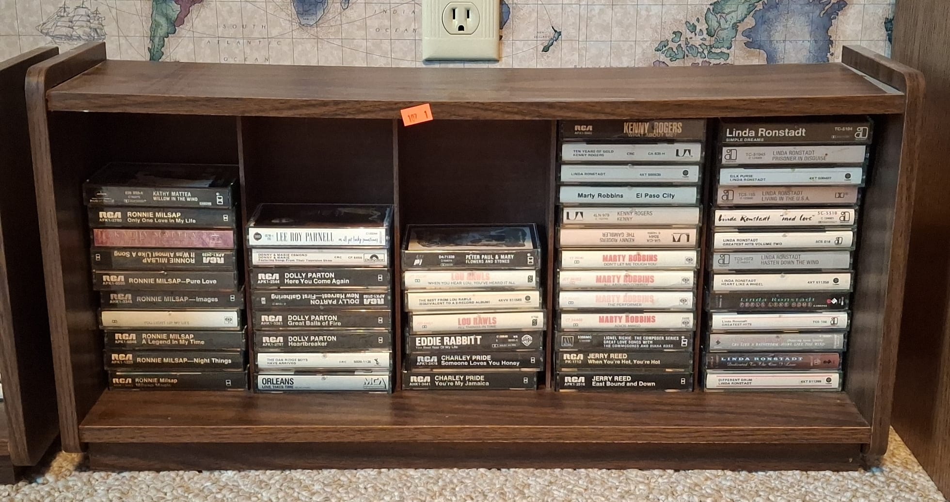 110 Wood Cassette Case with Cassettes inc. Larry Gatlin, Crystal Gayle 24" x 12
