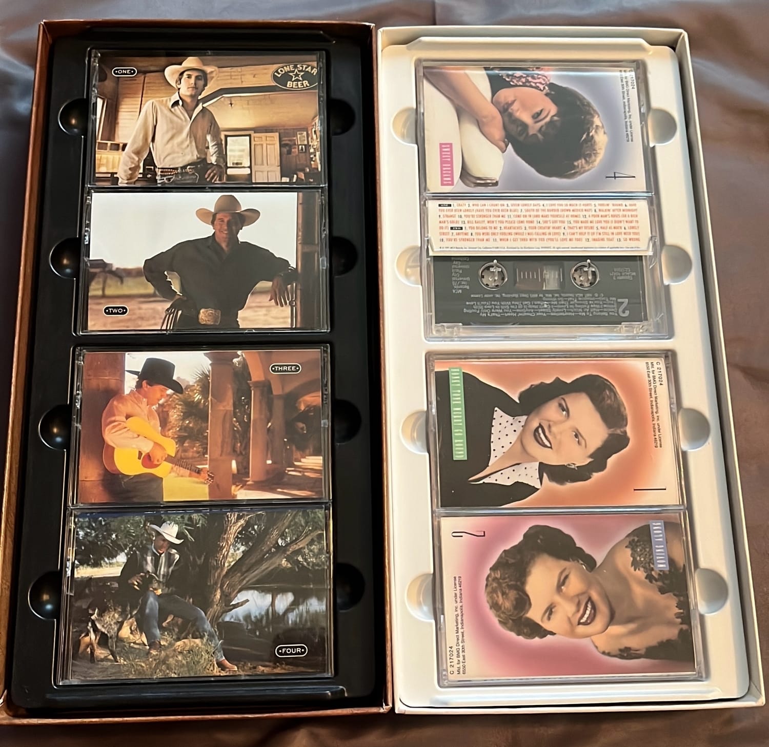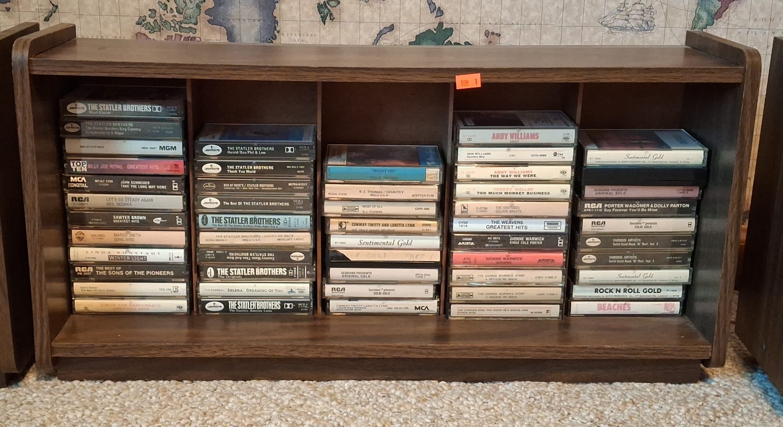 108 Wood Cassette Case with Cassettes inc. The Statler Brothers, Rock N Roll Gold, The Best of the Sons of the Pioneers 24" x 12"