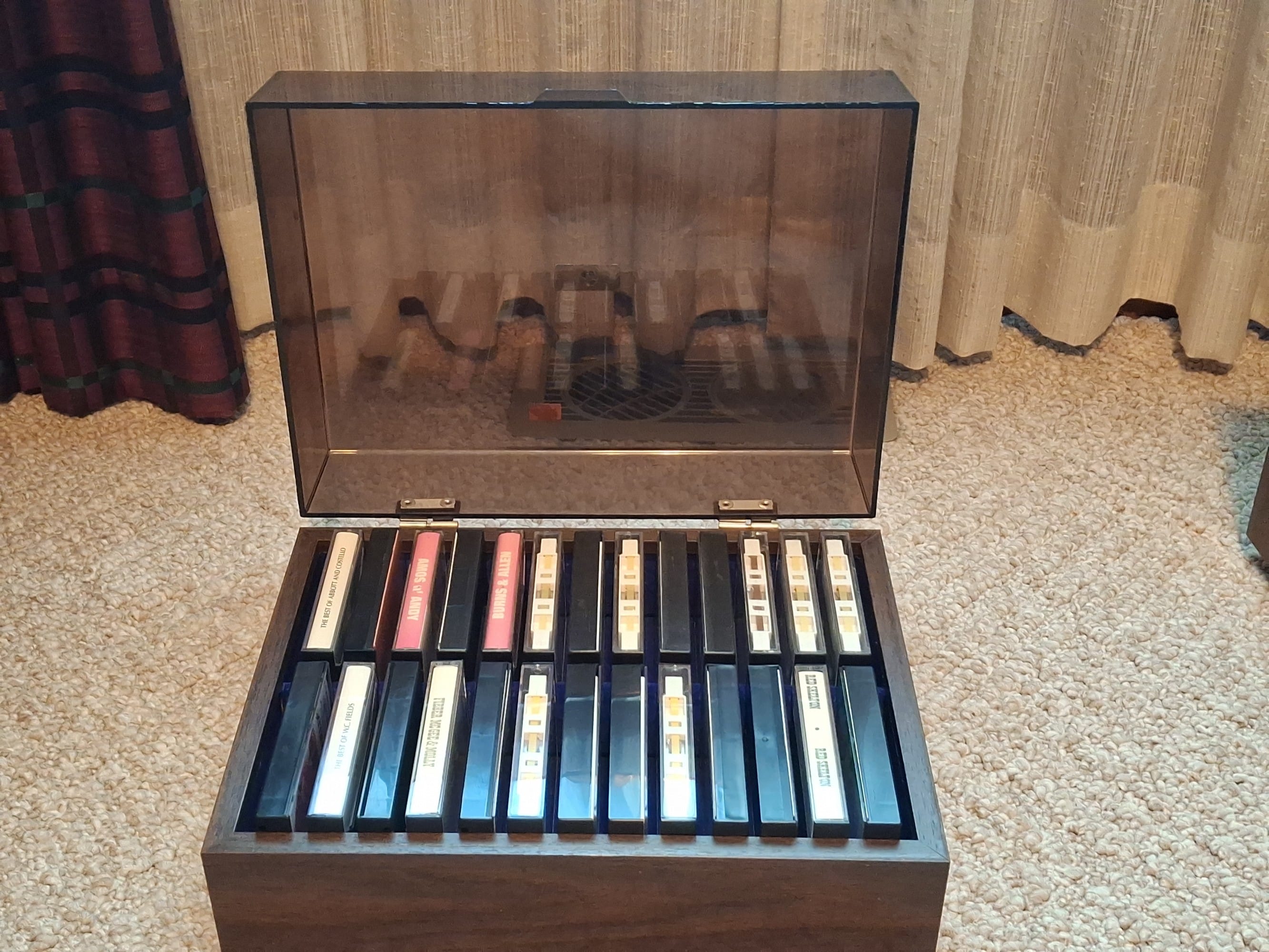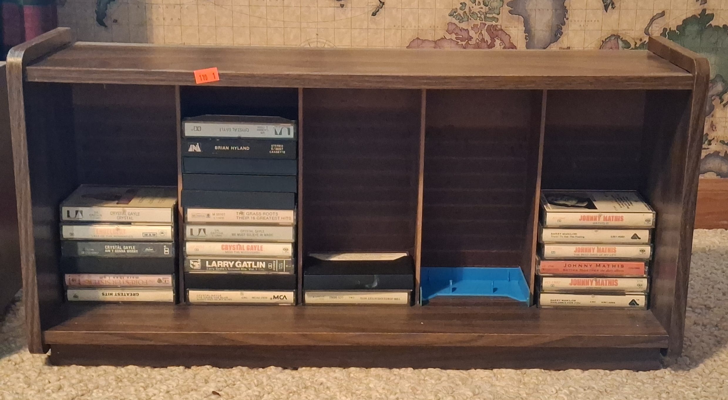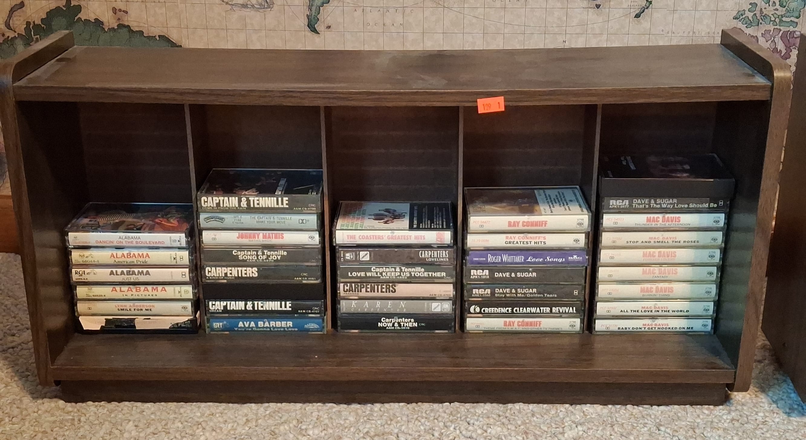 109 Wood Cassette Case with Cassettes inc. Captain & Tennille, Carpenters, Mac Davis 24" x 12"