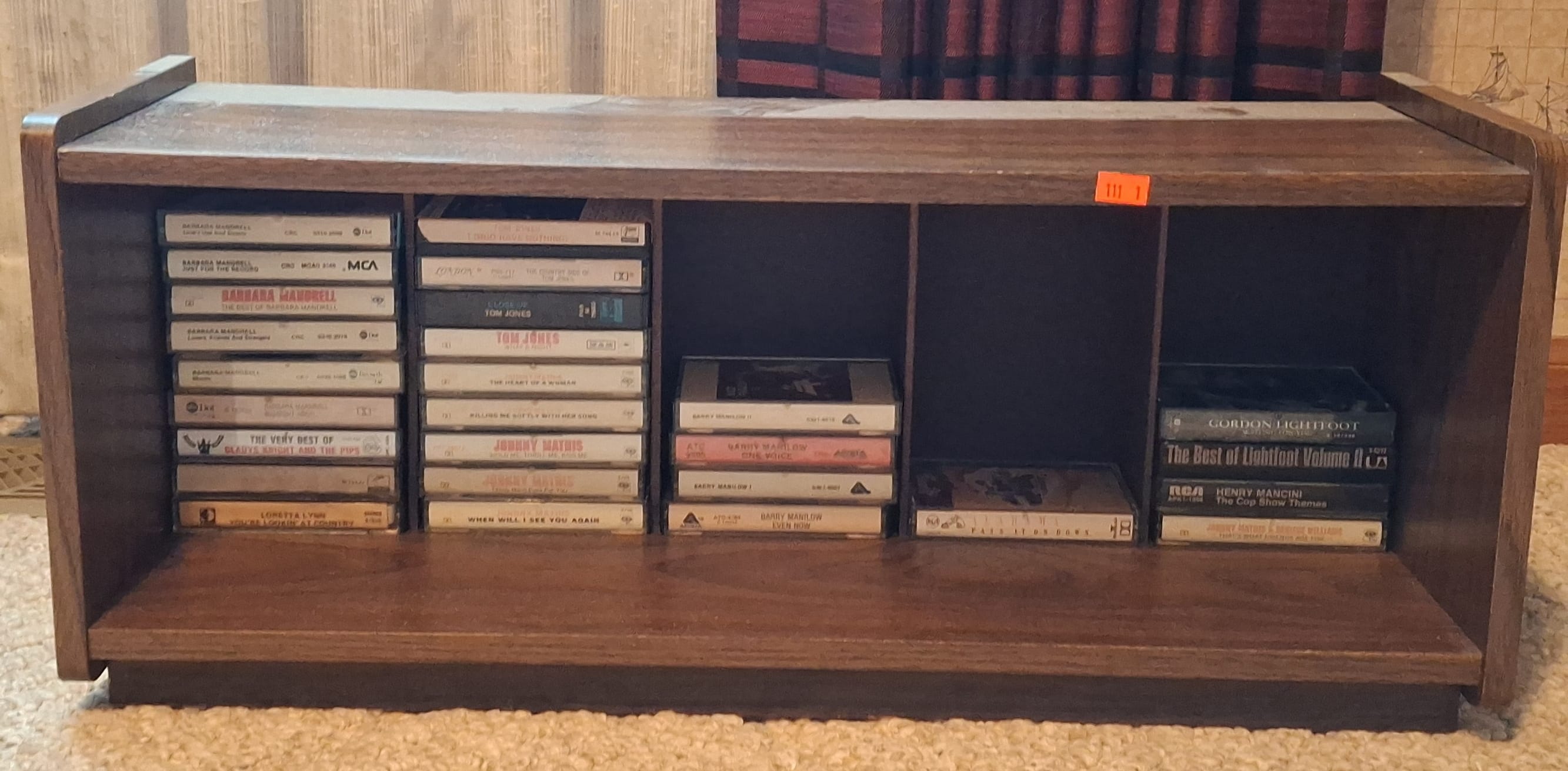 111 Wood Cassette Case with Cassettes inc. Jonny Mathis, Tom Jones, Loretta Lynn 24" x 10"