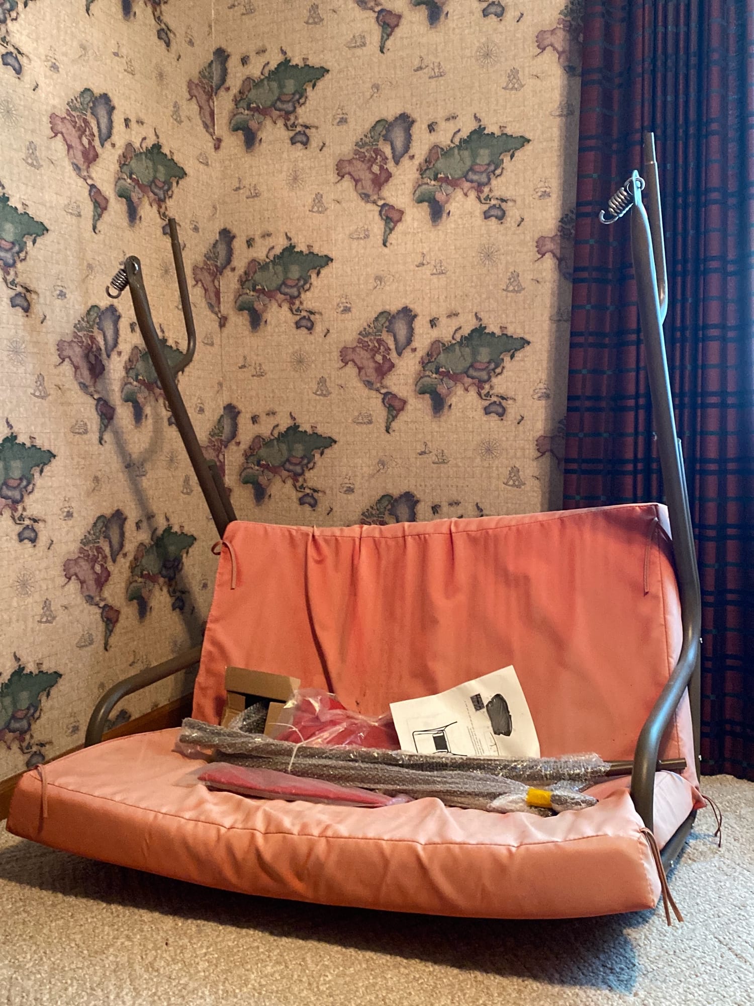113 Long Bay 2 person canopy swing 55”x 67” ( frame is on the porch)