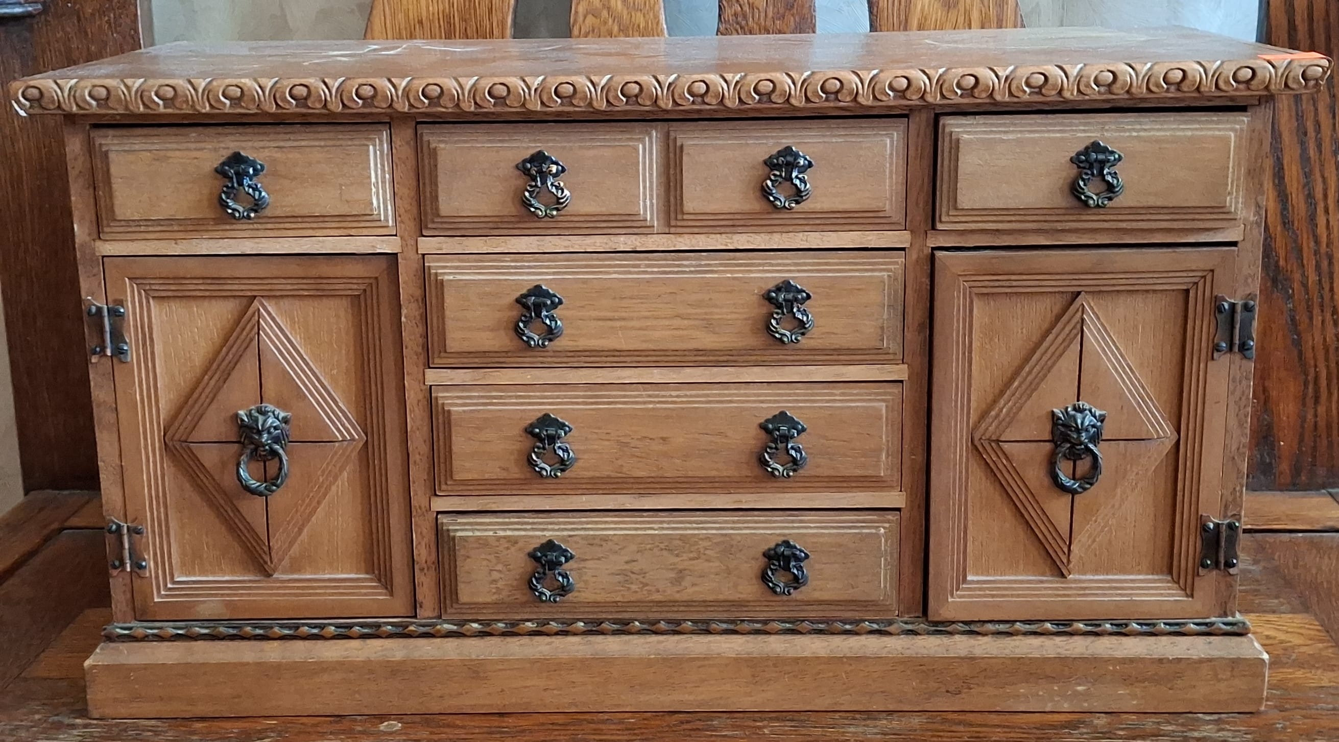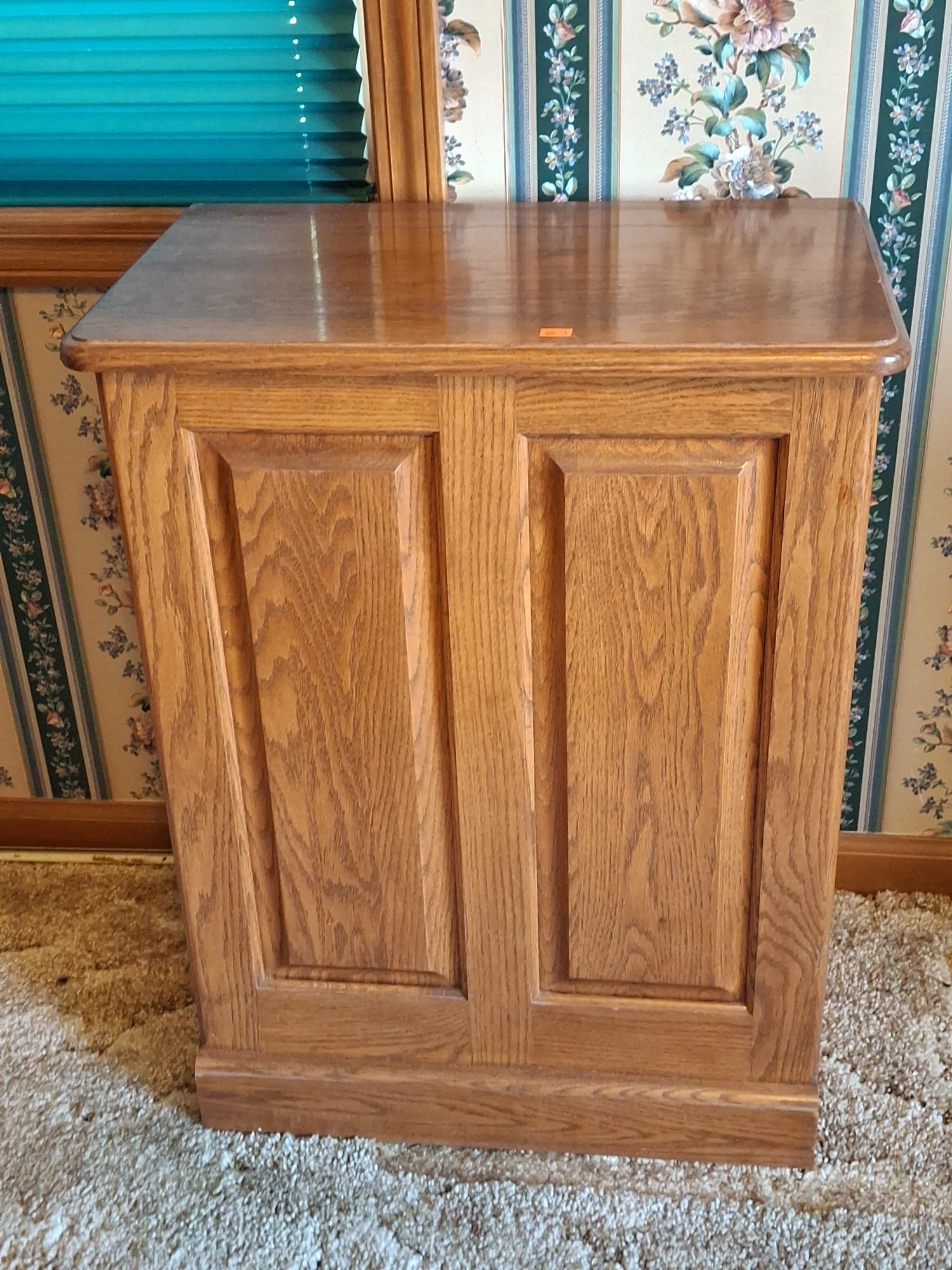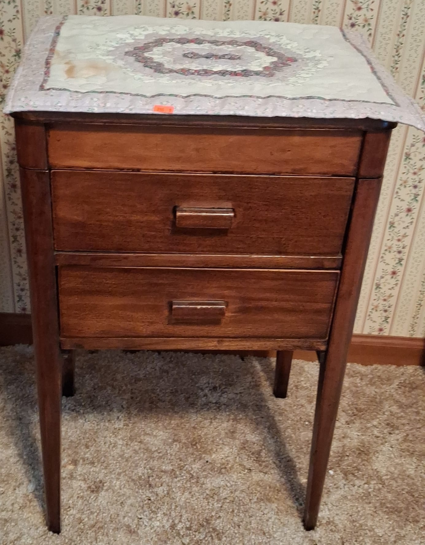 245 The Caswell Runyan Co. Perfect Sewing Cabinet 26" x 16" x 12" & Patchwork Doiley