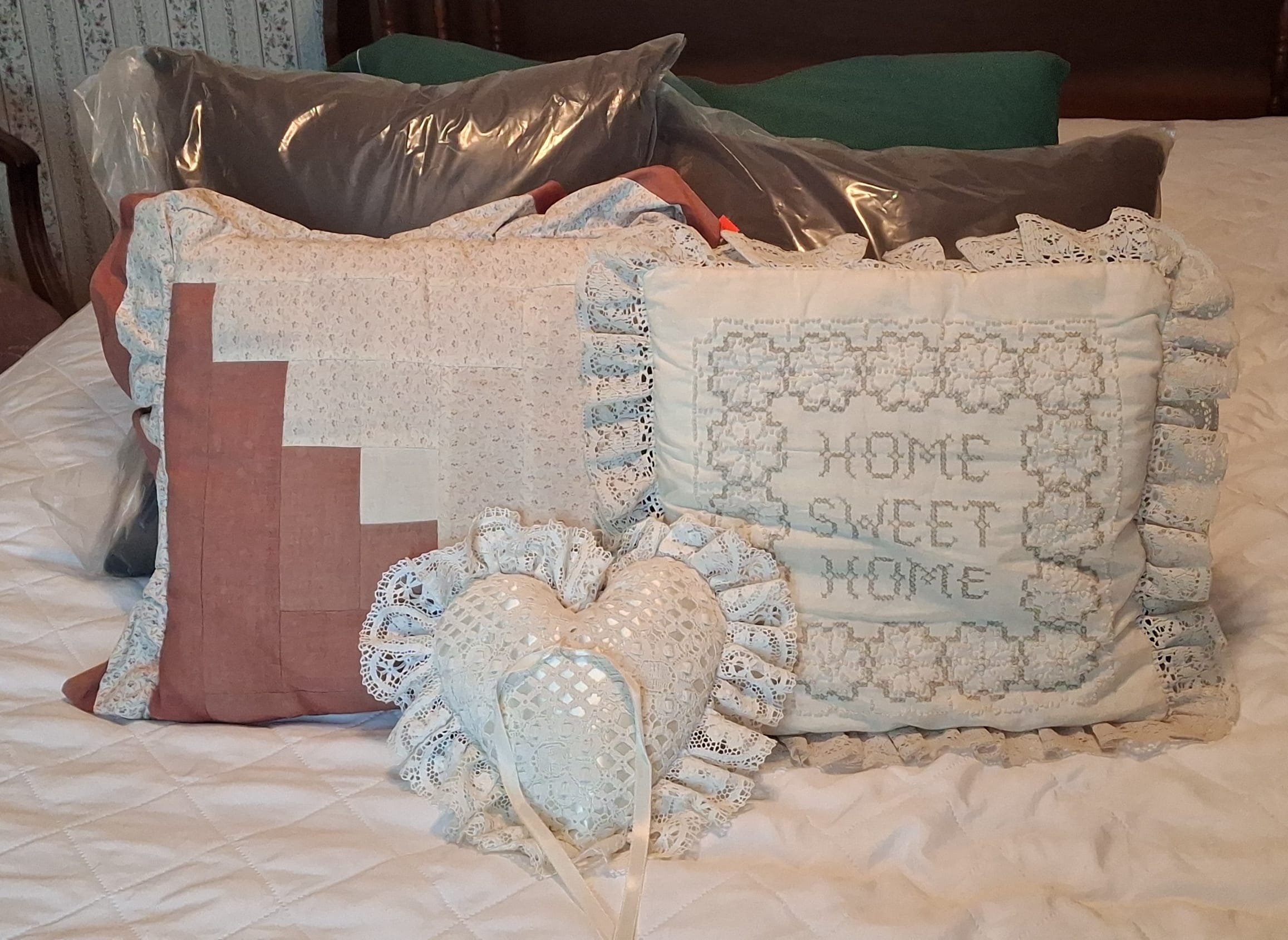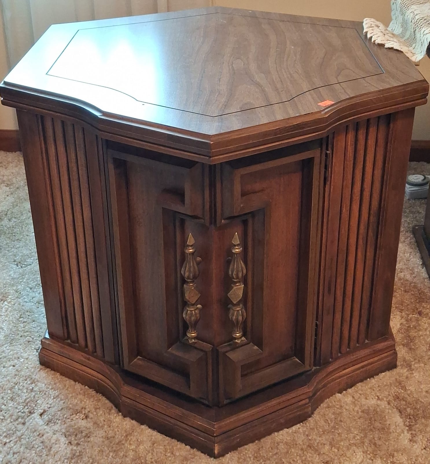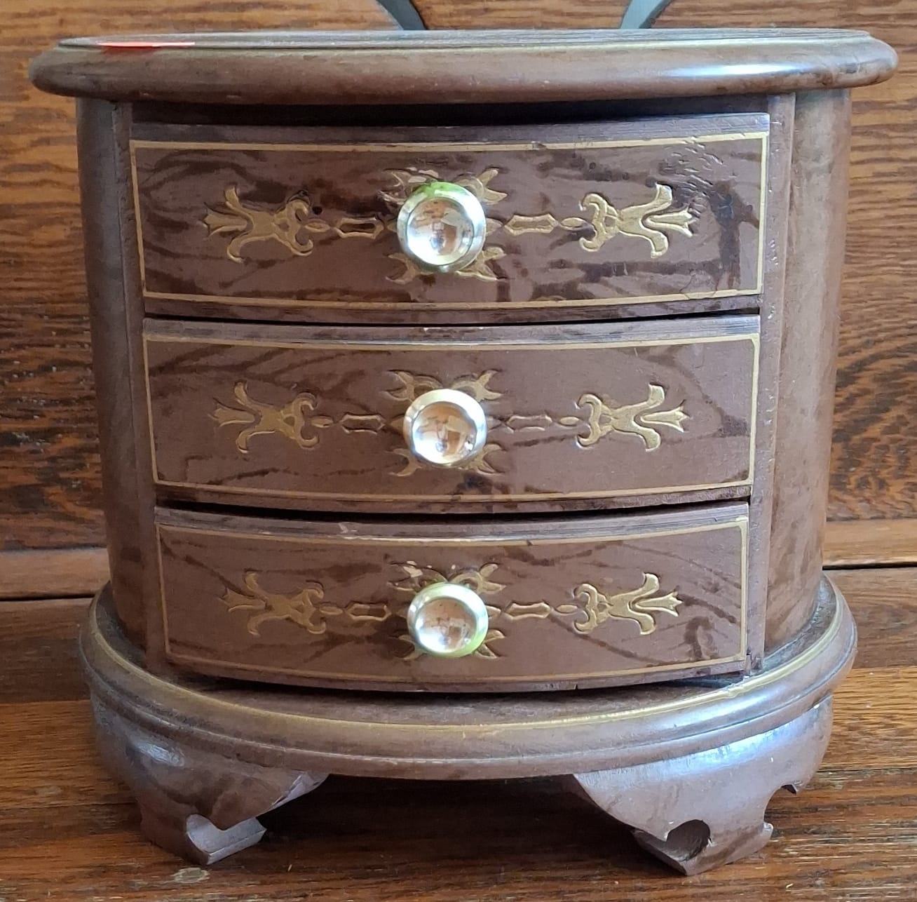 245 The Caswell Runyan Co. Perfect Sewing Cabinet 26" x 16" x 12" & Patchwork Doiley