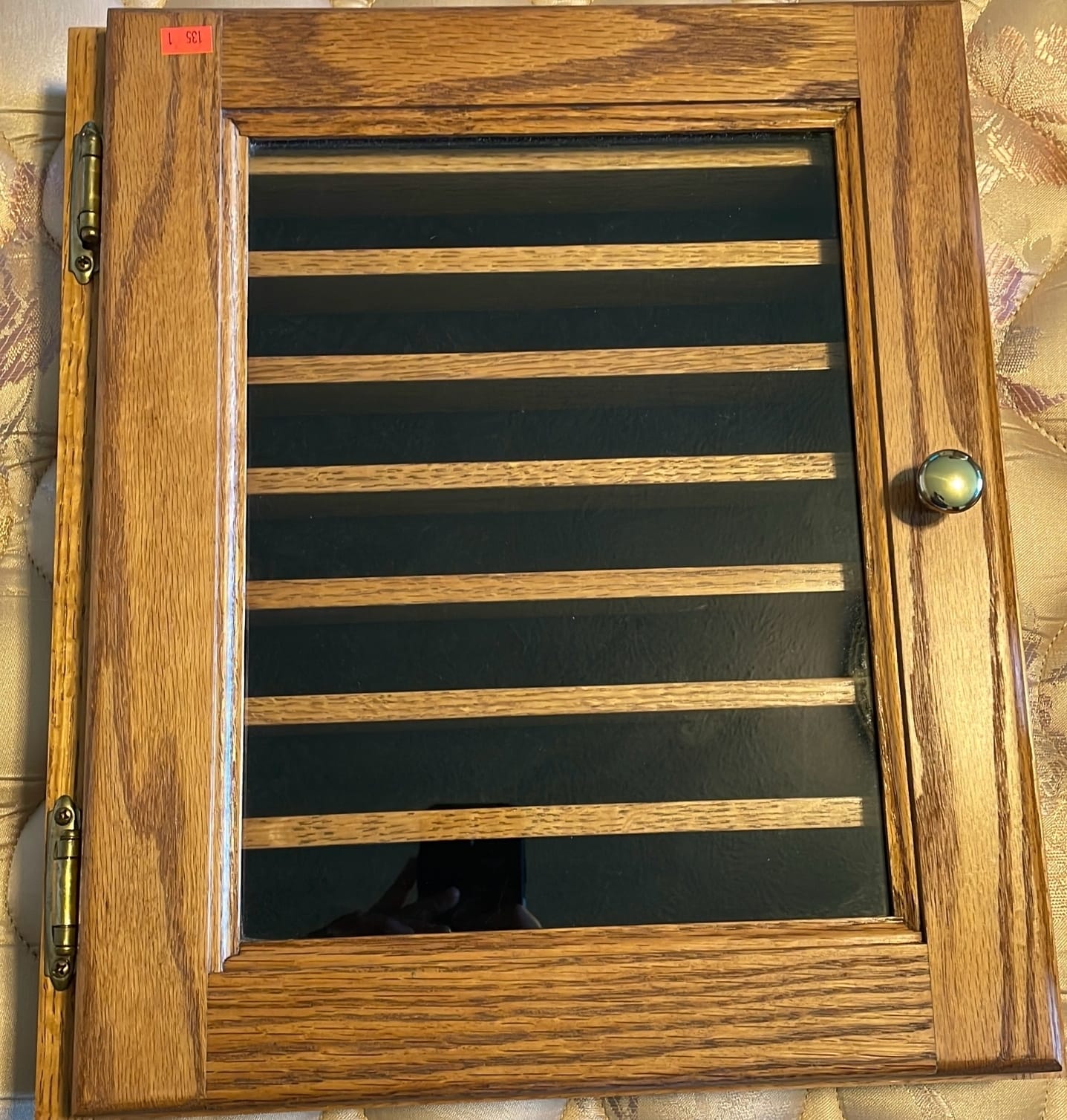 135 Wood Glass Front Wall Hanging Trinket Cabinet 15”x17”x3”