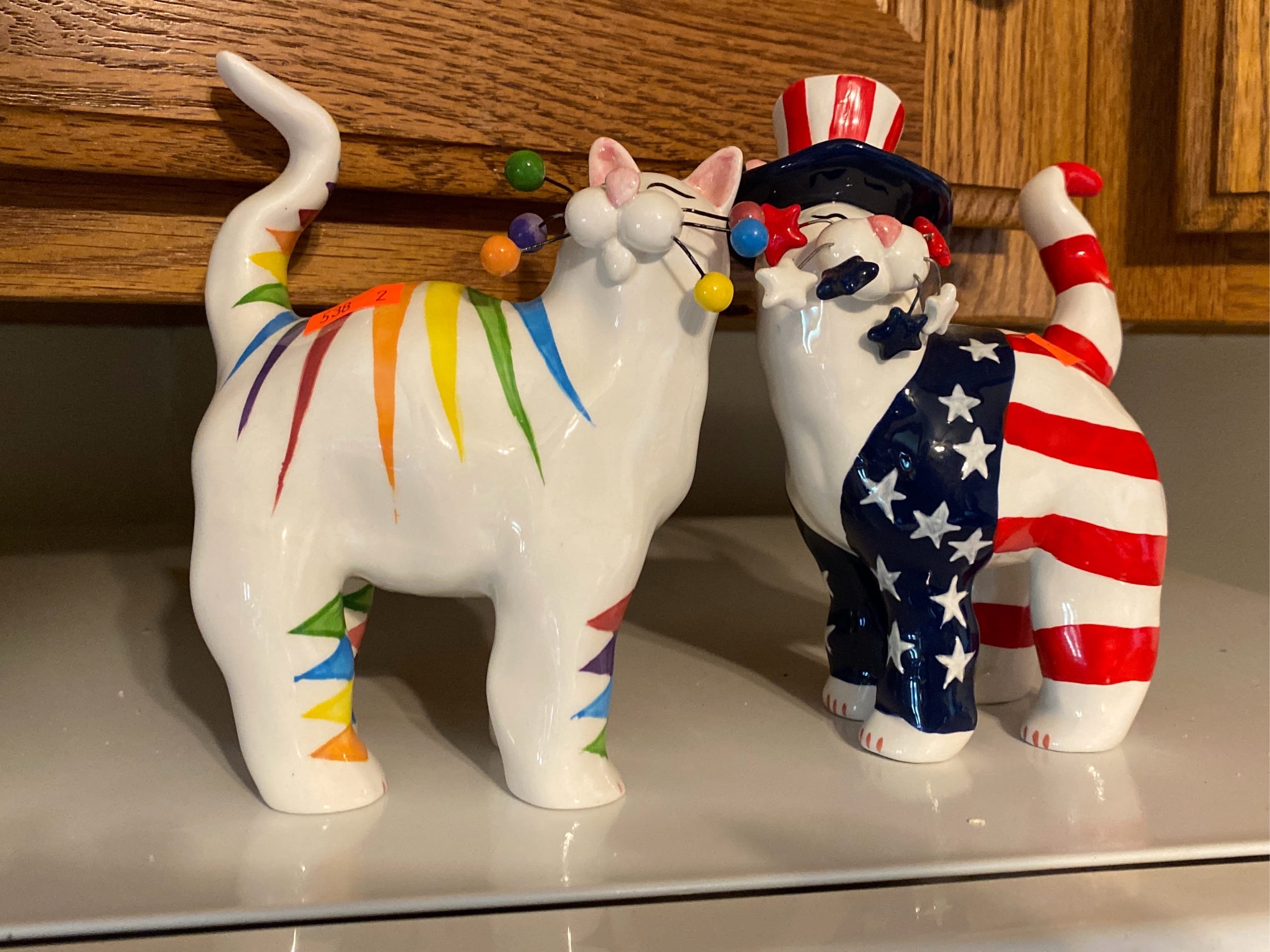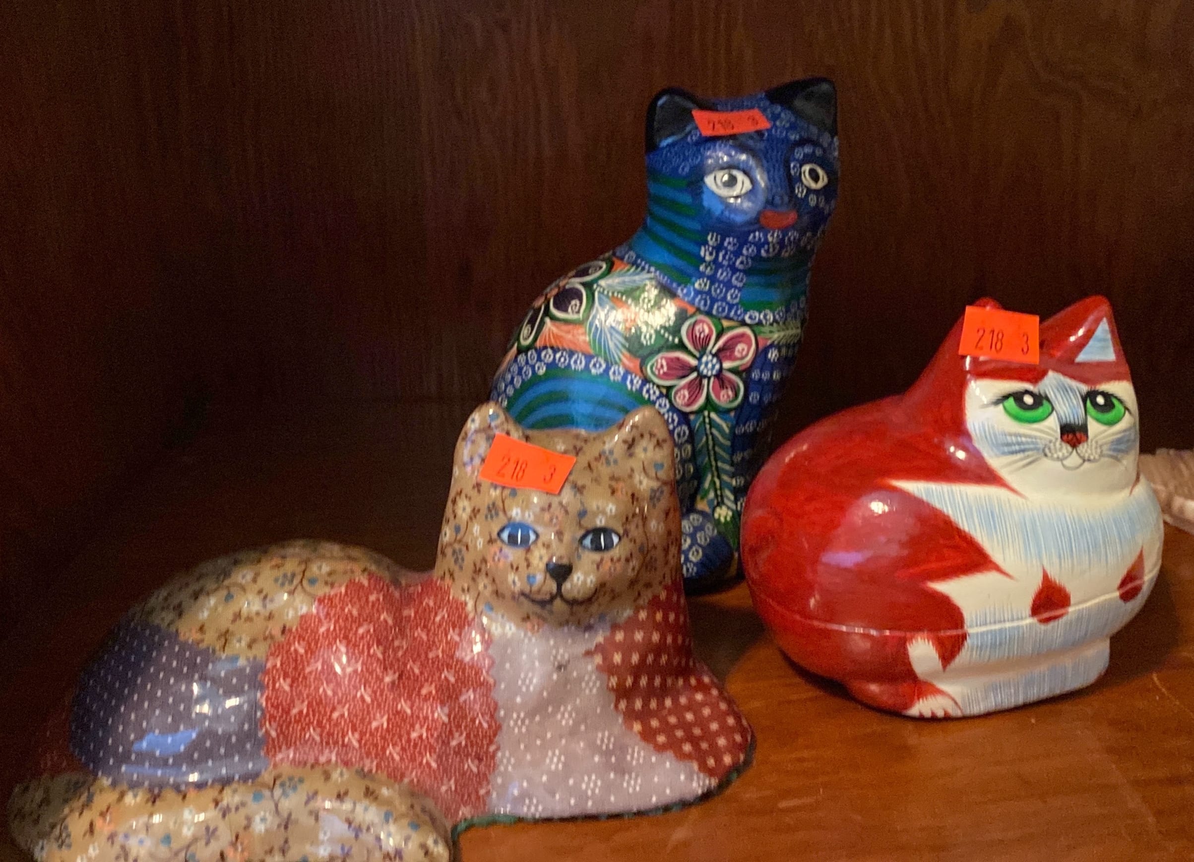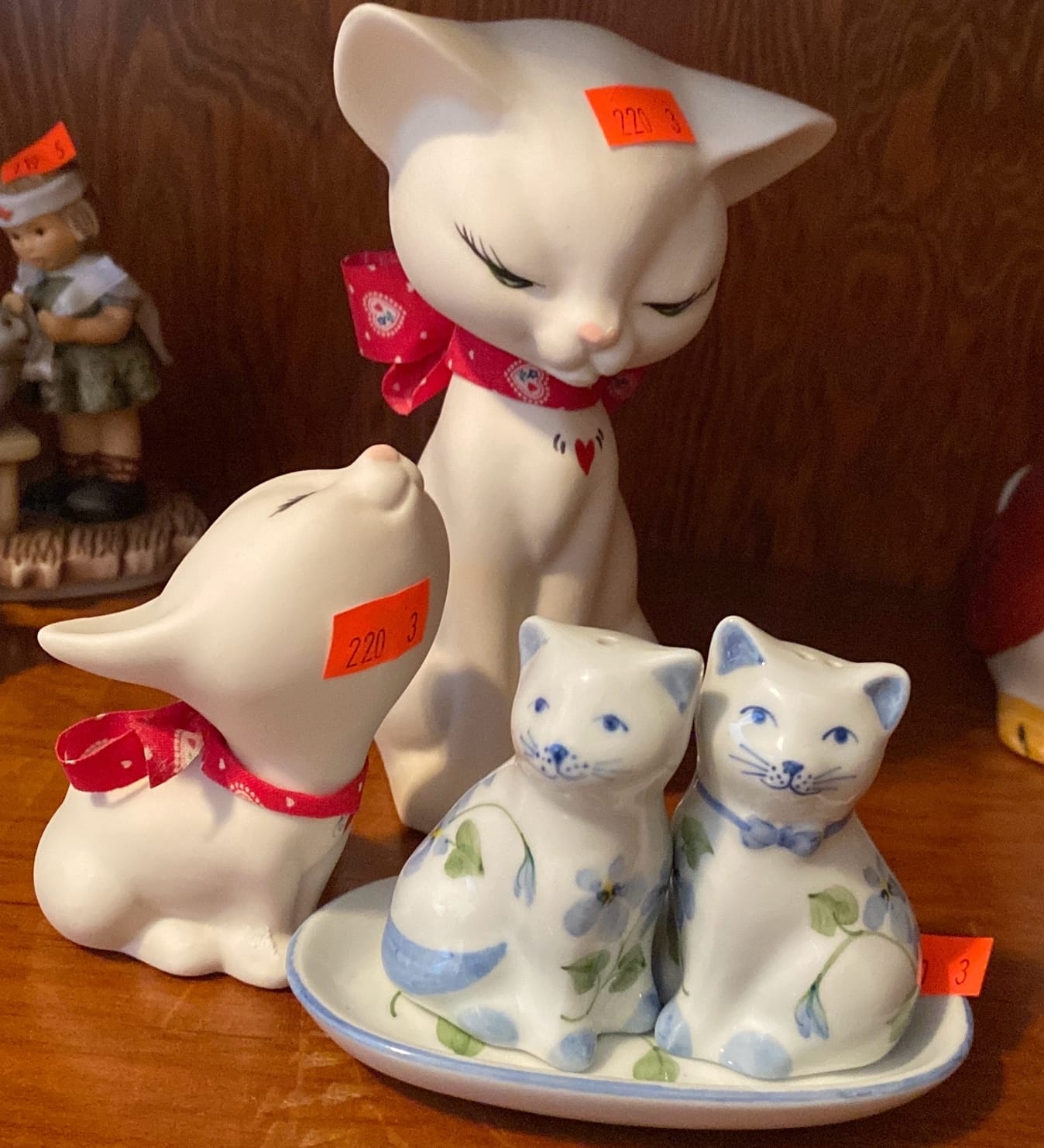 220 Cat figurines 3.5”, 6”, cat salt & pepper shakers 2.5”