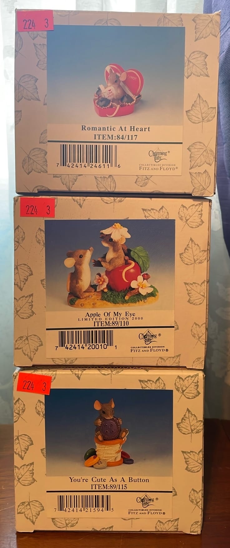 224 Charming Tails Figurines Inc. Romantic at Heart, Apple of My Eye, You’re cute As A Button in boxes