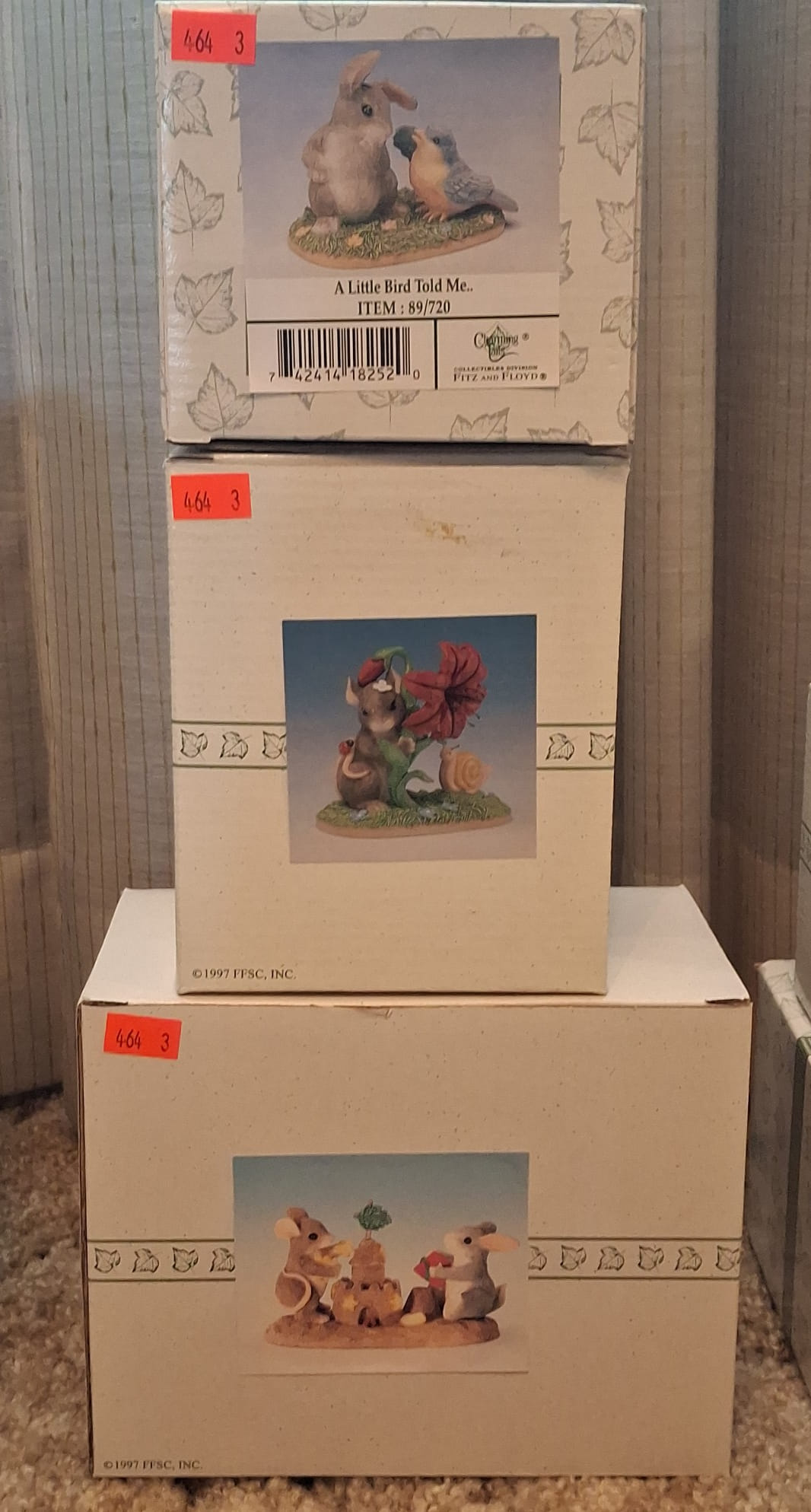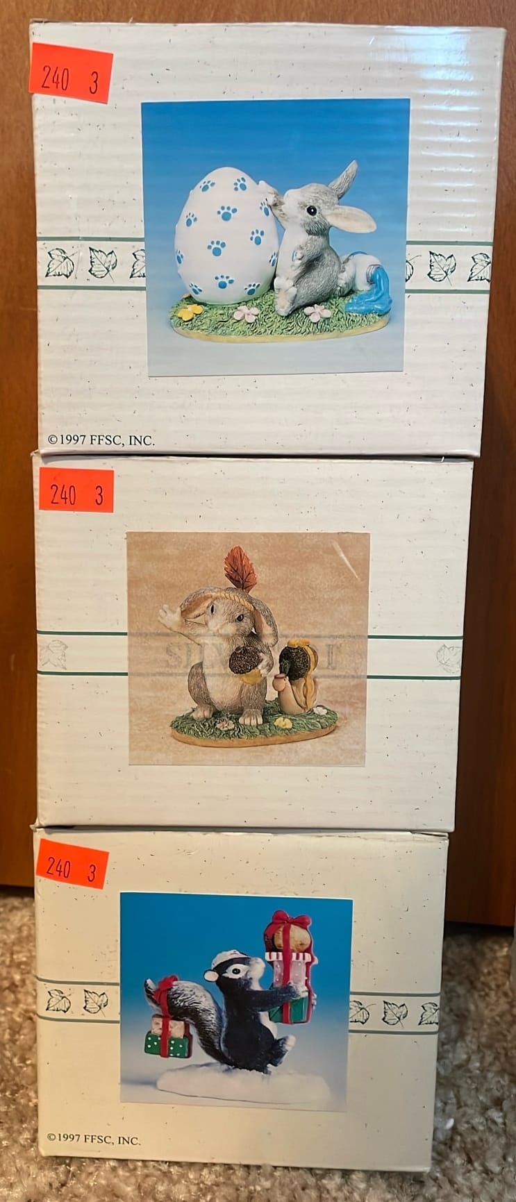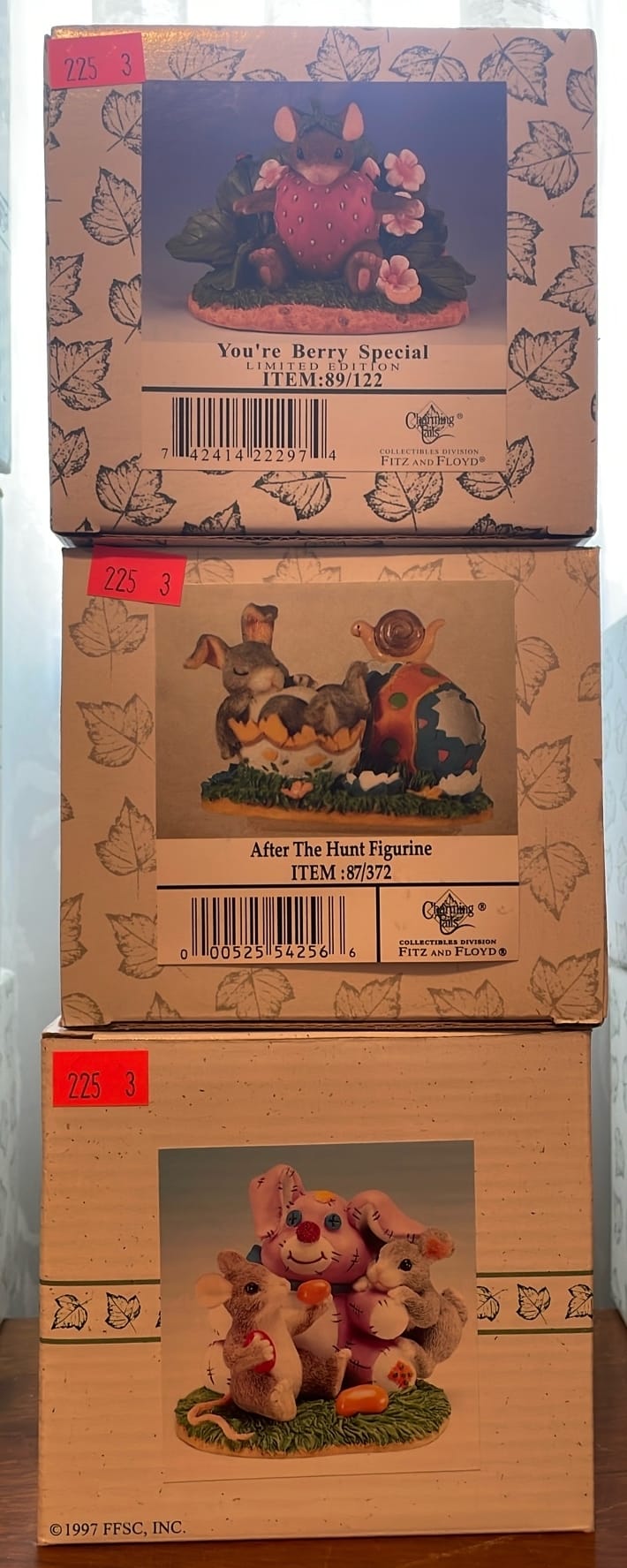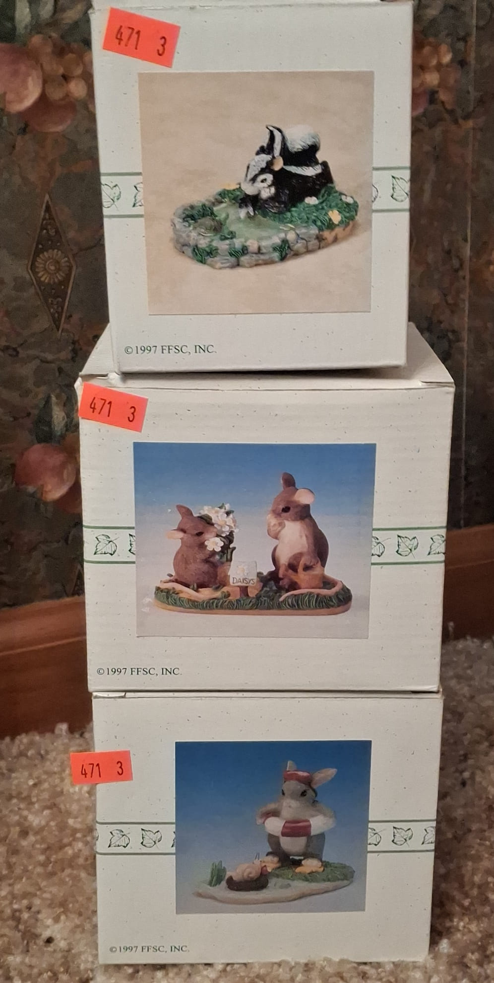 225 Charming Tails Figurines Inc. You’re Berry Special, After The Hunt Figurine, No Thanks, I’m Stuffed in boxes