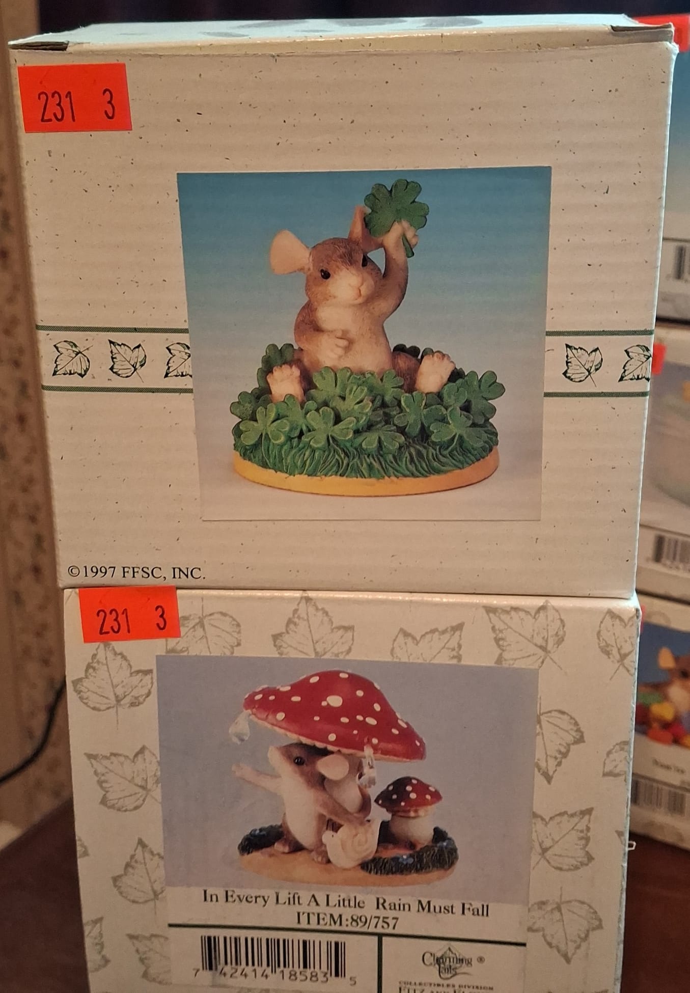 231 Fitz and Floyd Charming Tails Figurines Inc. In Every Life A Little Rain Must Fall, Triple Delight, Good Luck in boxes