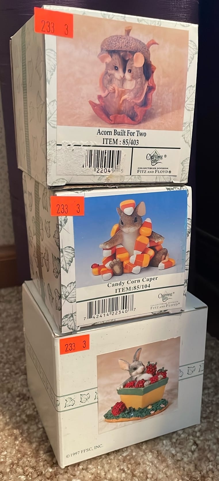 233 Charming Tails Figurines Inc. Acorn Built For Two, Candy Corn Caper, The Berry Best in boxes