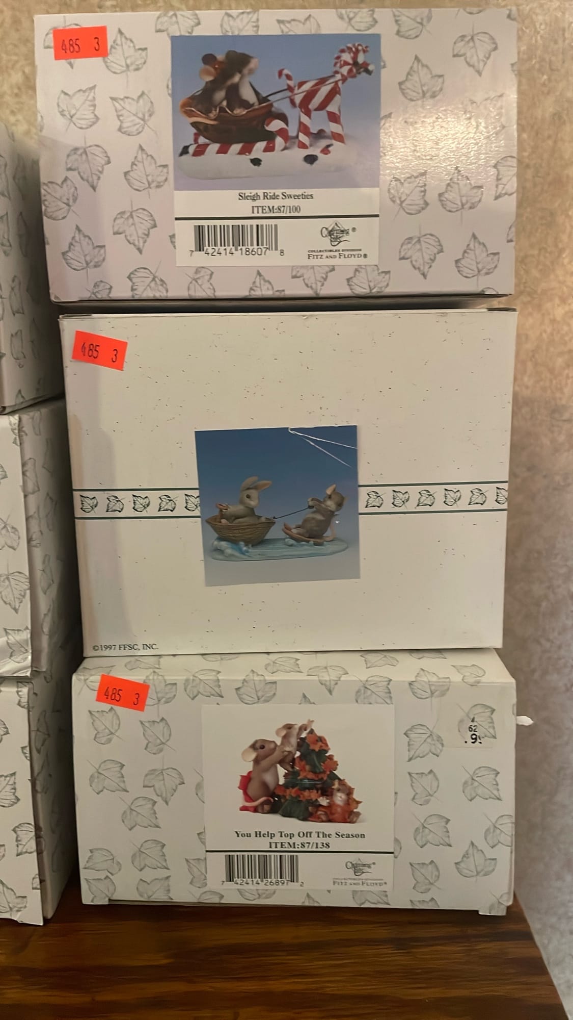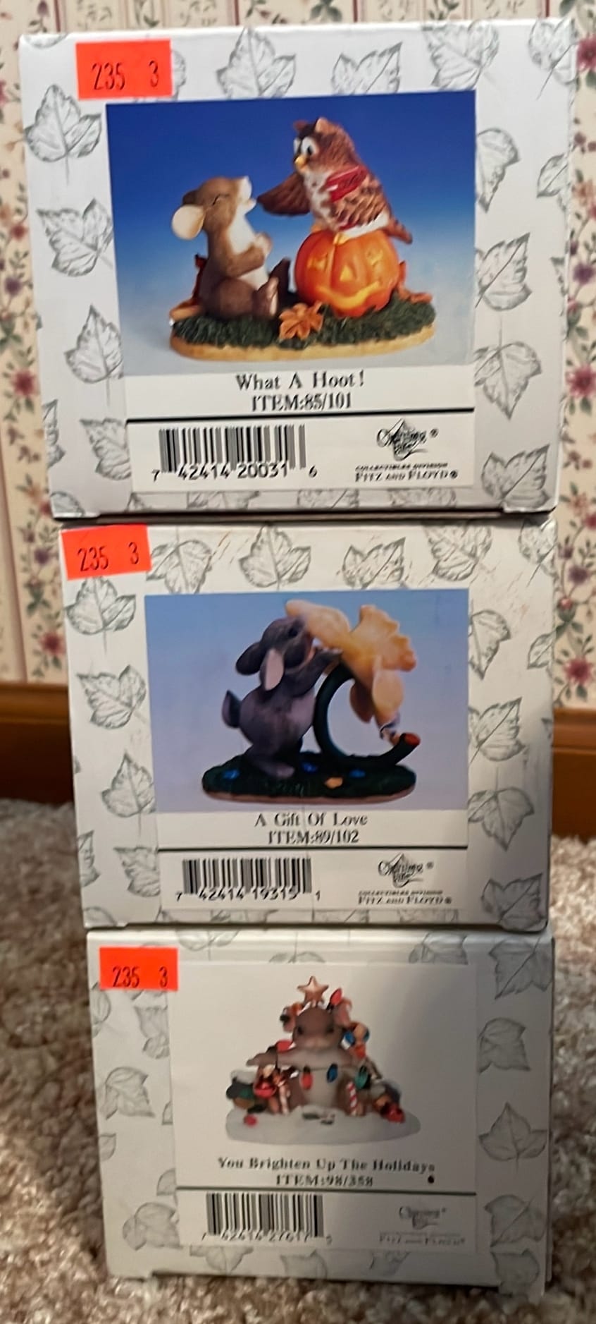 235 Charming Tails Figurines Inc. What A Hoot, A Gift Of Love, You Brighten Up The Holiday in boxes