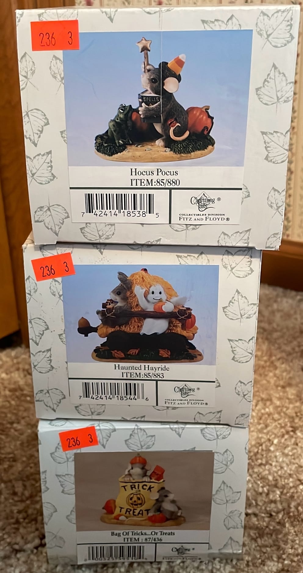 236 Charming Tails Figurines Inc. Hocus Pocus, Haunted Hayride, Bag Of Tricks Or Treats in boxes