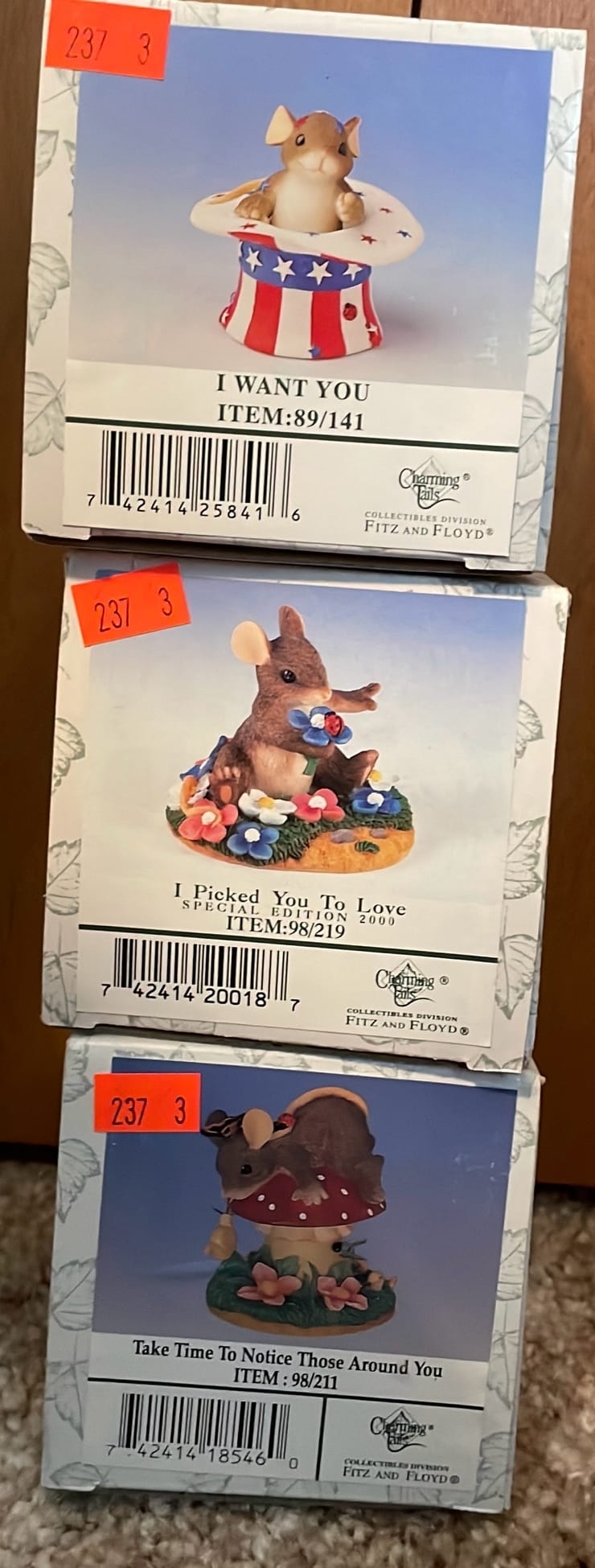 237 Charming Tails Figurines Inc. I want you, I Picked you to Love, Take time to notice Those Around You in boxes