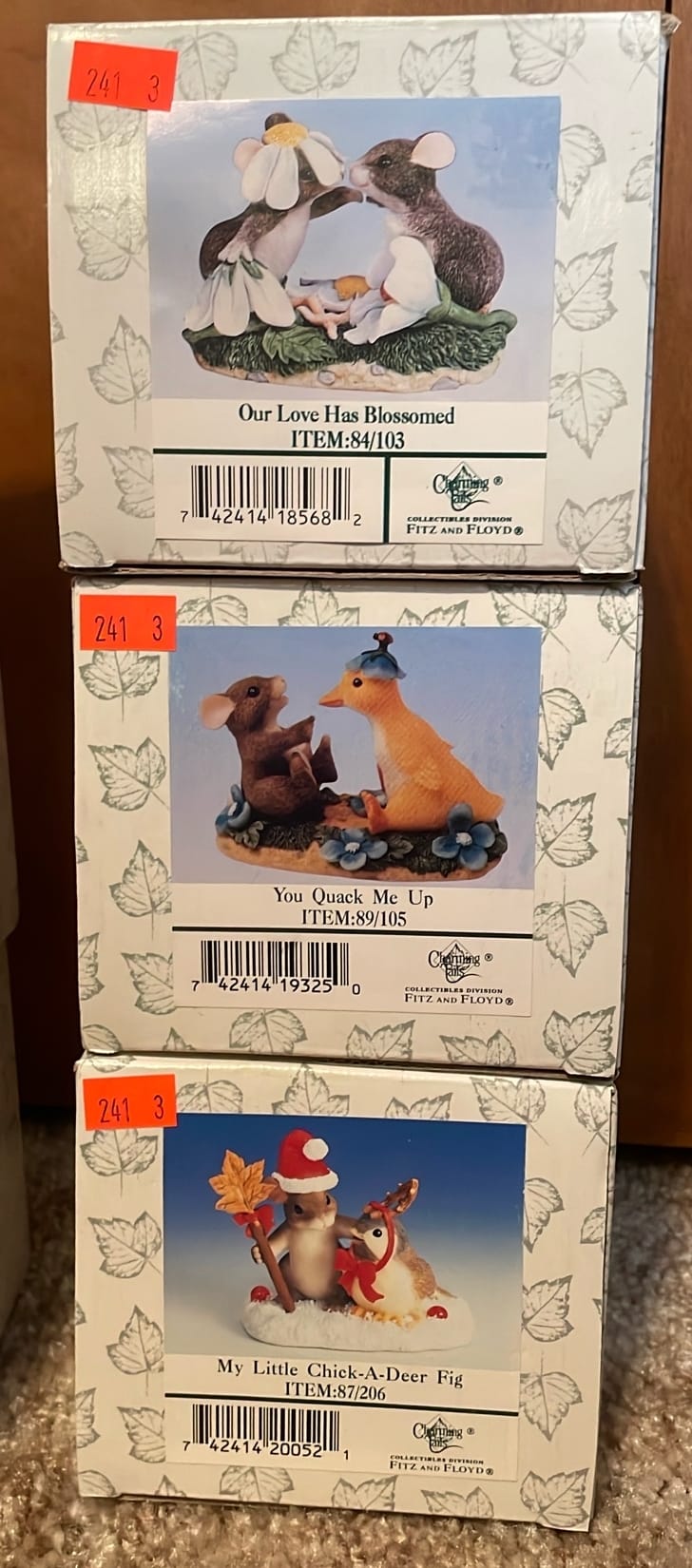 241 Charming Tails Figurines Inc. Out Love Has Blossomed, You Quack Me Up, My Little Chick-A-Deer in boxes