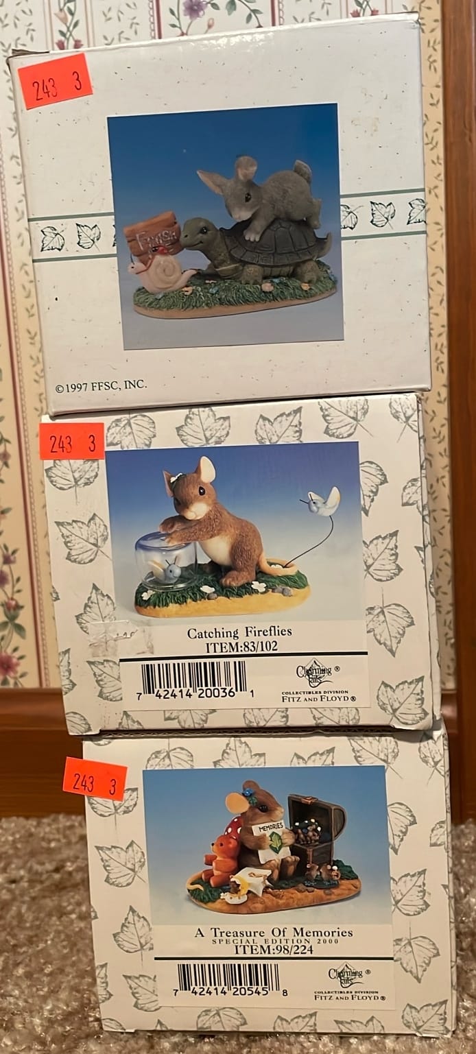 243 Charming Tails Figurines Inc. Catching Fireflies, Steady Wtns The race, A Treasure Of memories in boxes