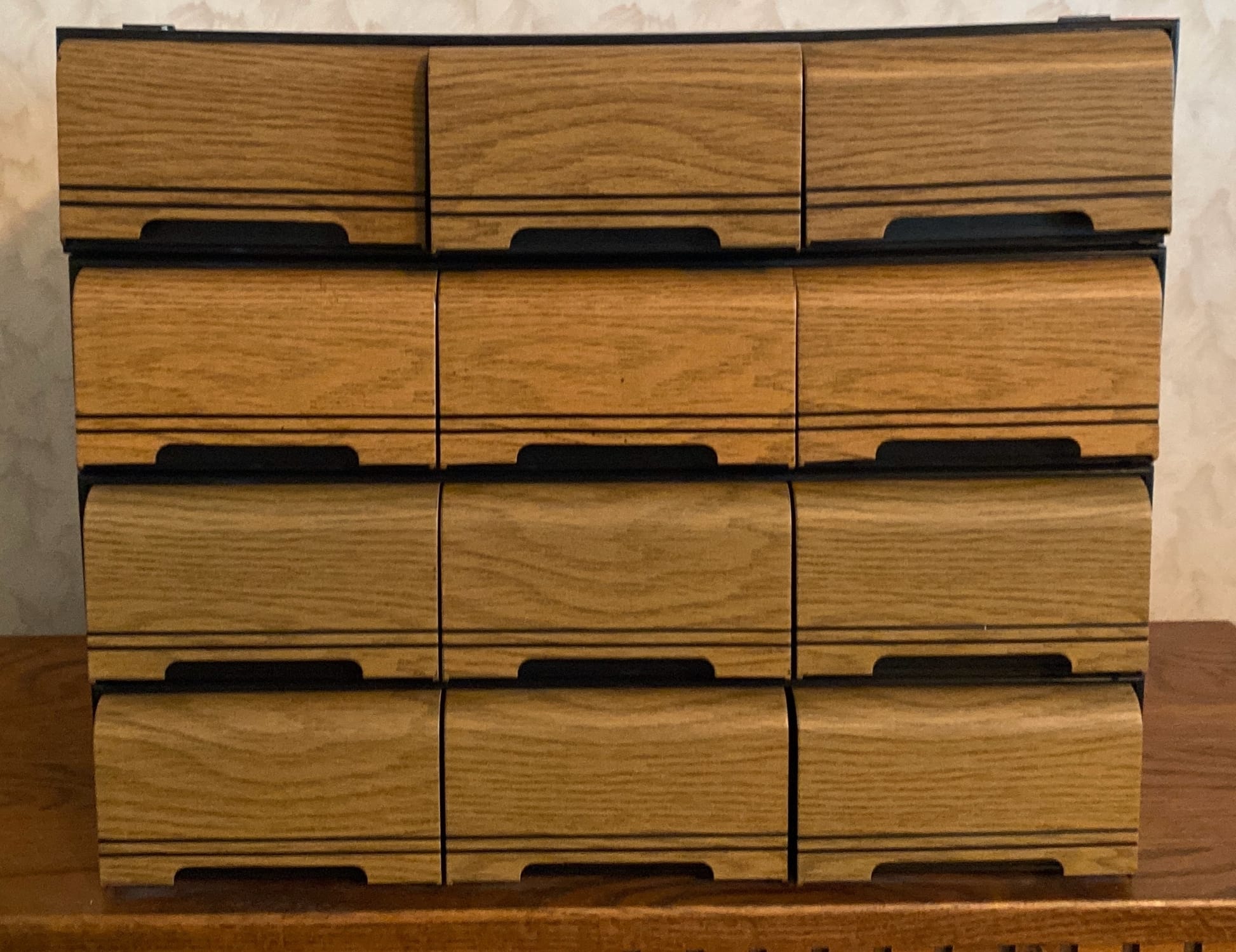 103 Stackable wood cases 15”x 24”, cassette holder 24”x 10”