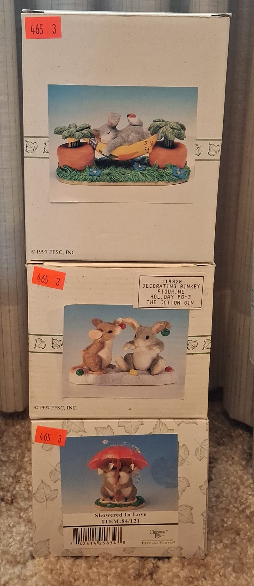 227 Fitz and Floyd Charming Tails Figurines Inc. Wrapped with Pride, I'm Stuck On You & I'm Your Love Bunny in boxes