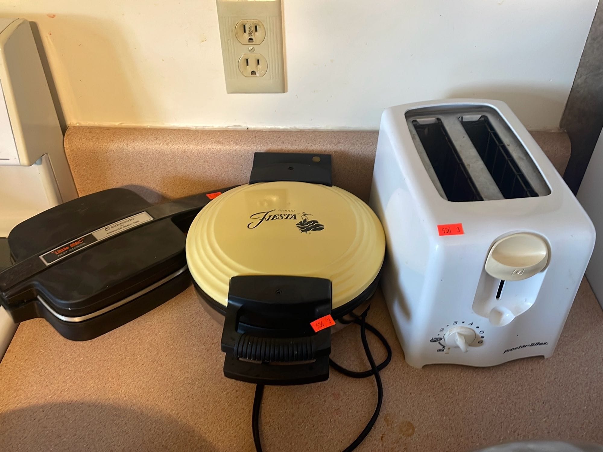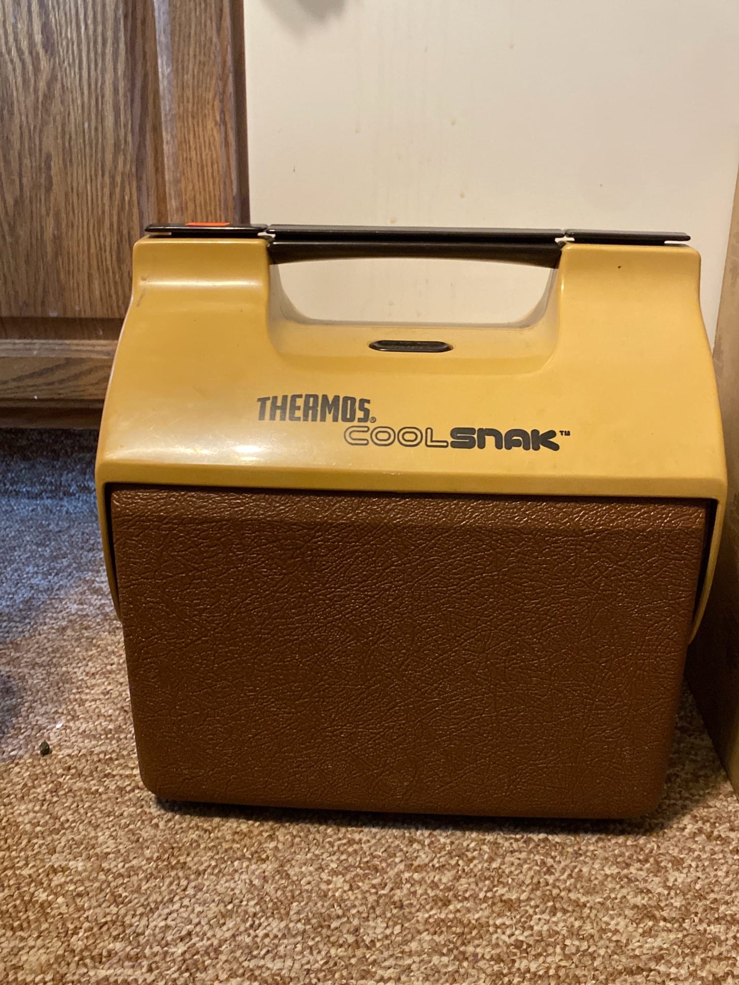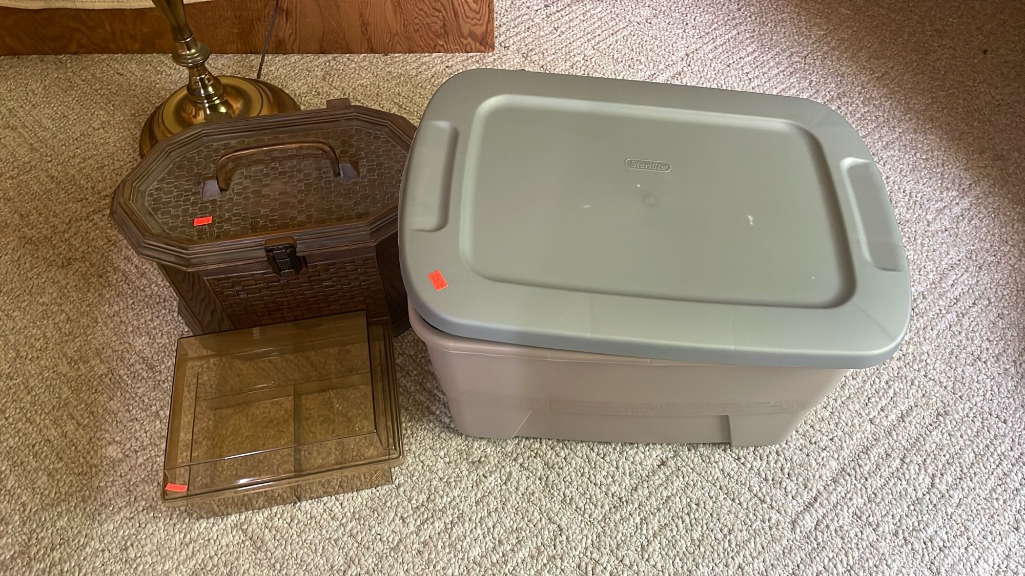 623 Coleman cooler, clothing iron with stand, bathroom scale, tote lid