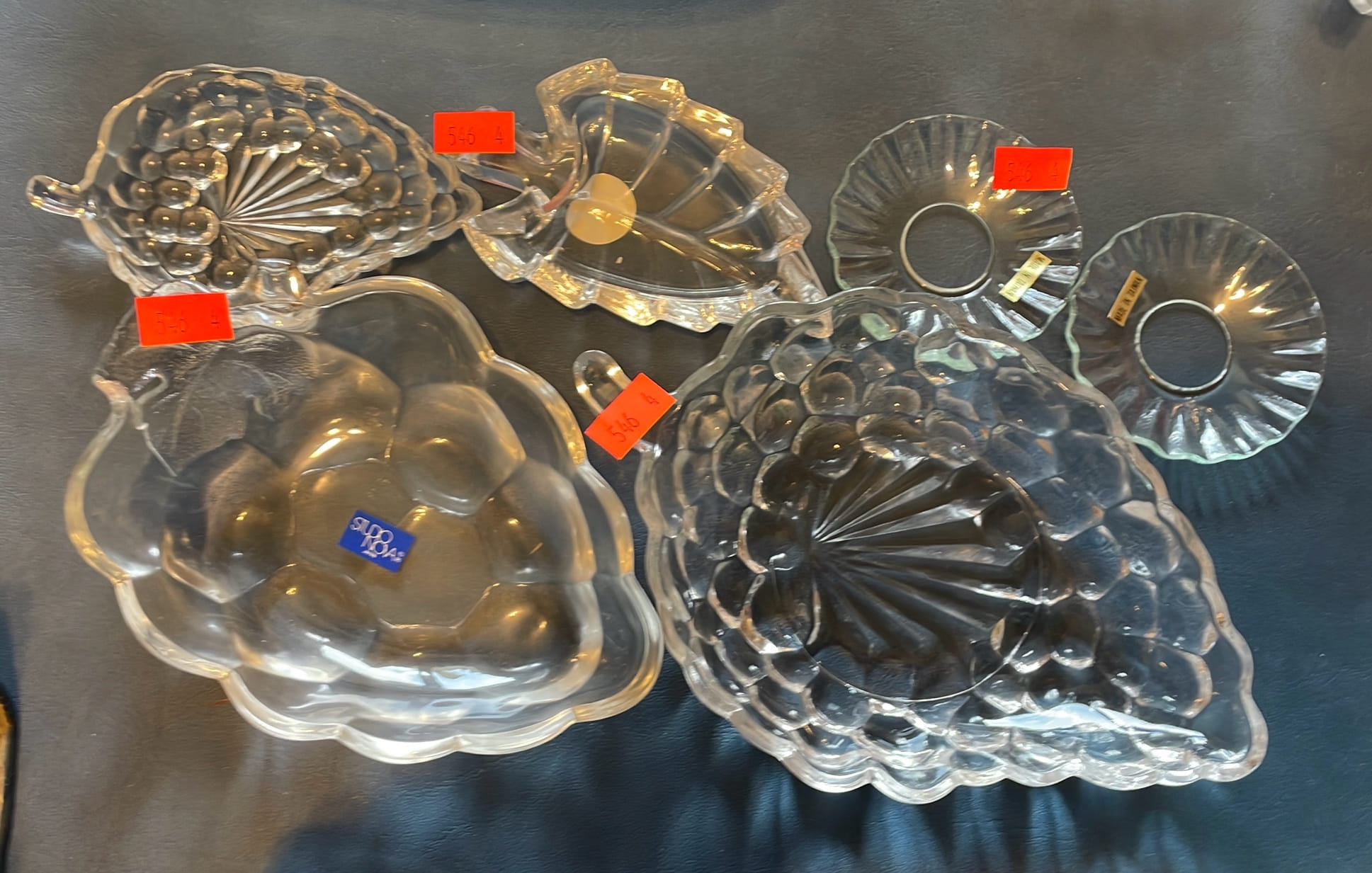 546 4 Clear Glass Leaf Shaped Trinket Dishes 4”-7”