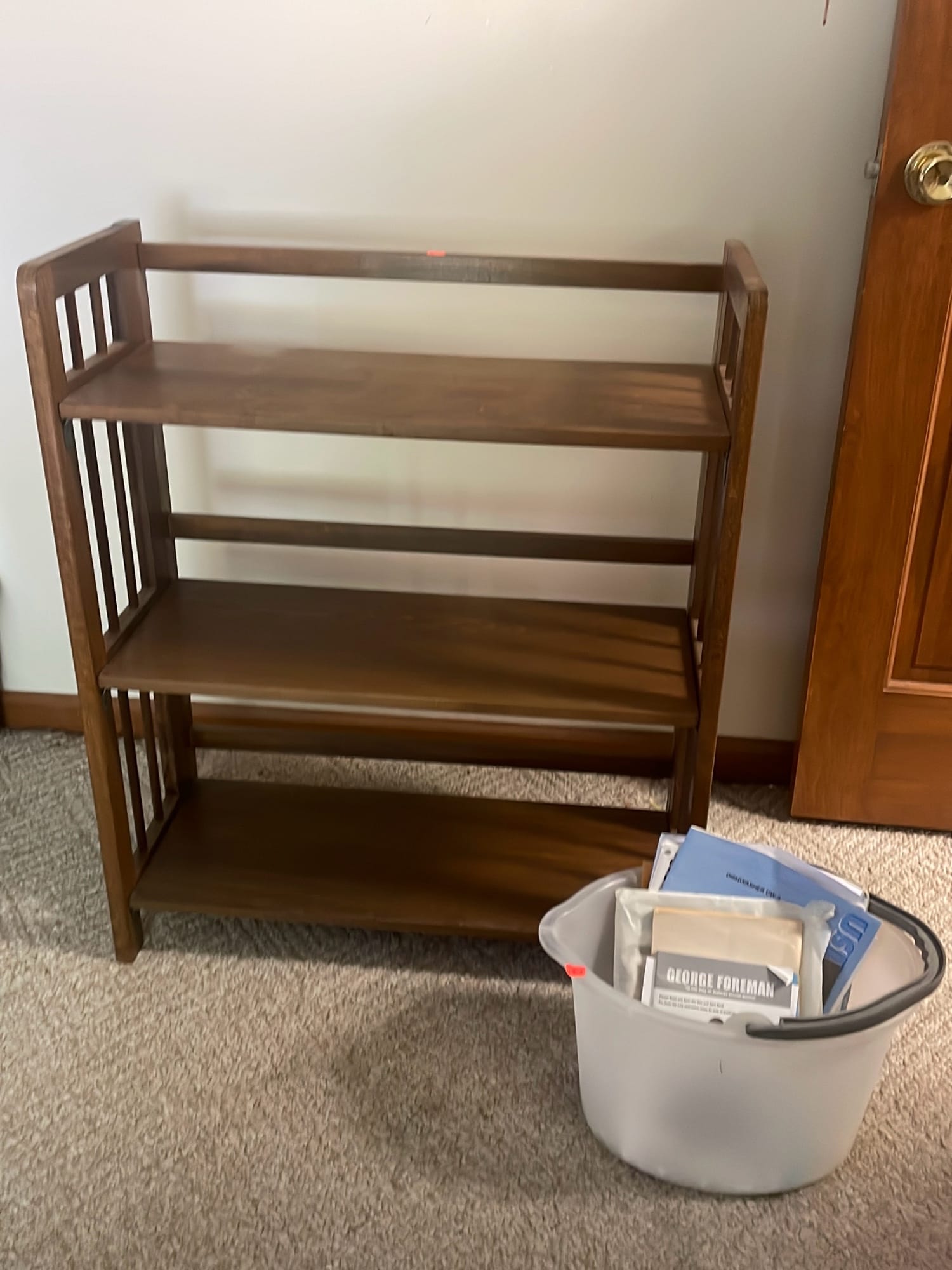 615 Wood Fold Up Shelf 28”x11”x33”, Plastic Bucket, Instruction Manual