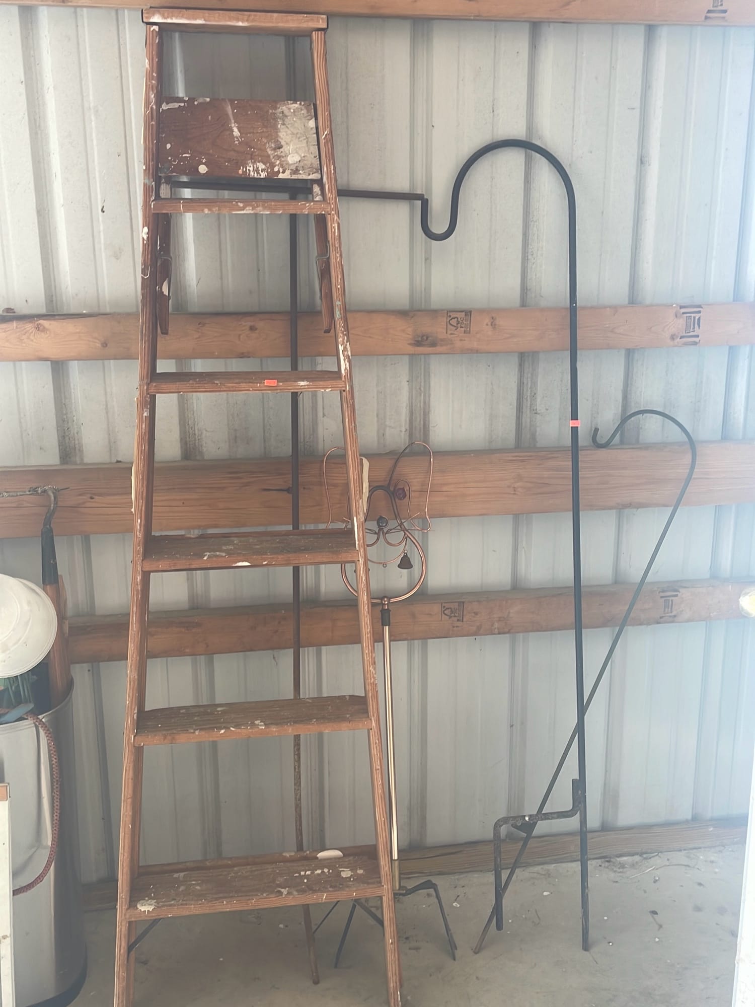 700 Wood 5ft Ladder, Sheperd's Hooks, Garden Hoe, Misc