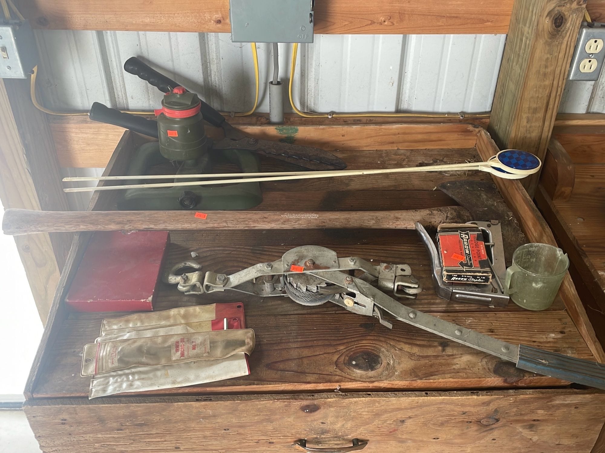 701 Hedge Trimmer, Yard Sprinkler, Axe, Stapler, Hook Strap