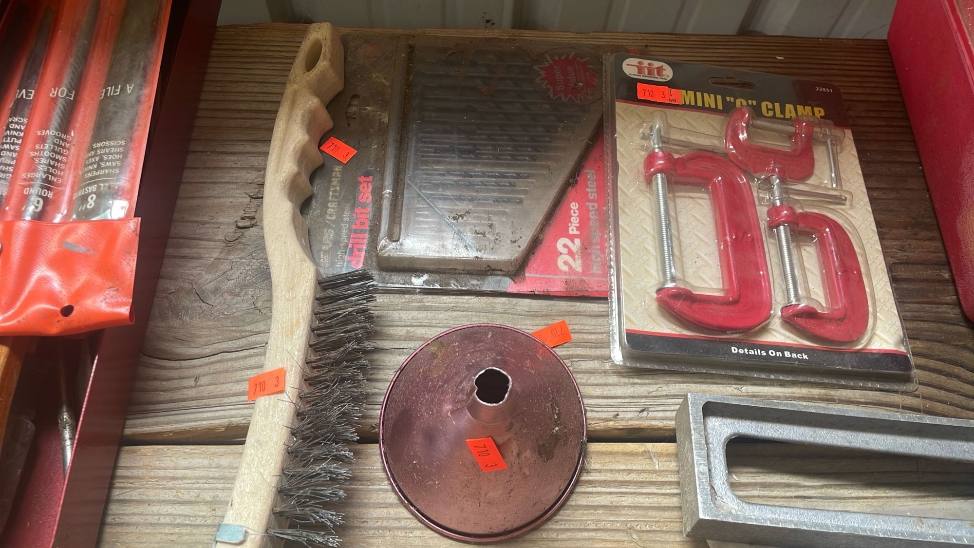 710 Wire Brush, C Clamp, Craftsman Drill Bit Set, Funnel