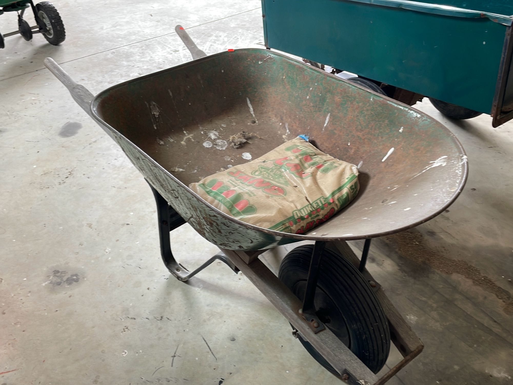726 Wheel barrow, 50lb bag of Quikrete play sand