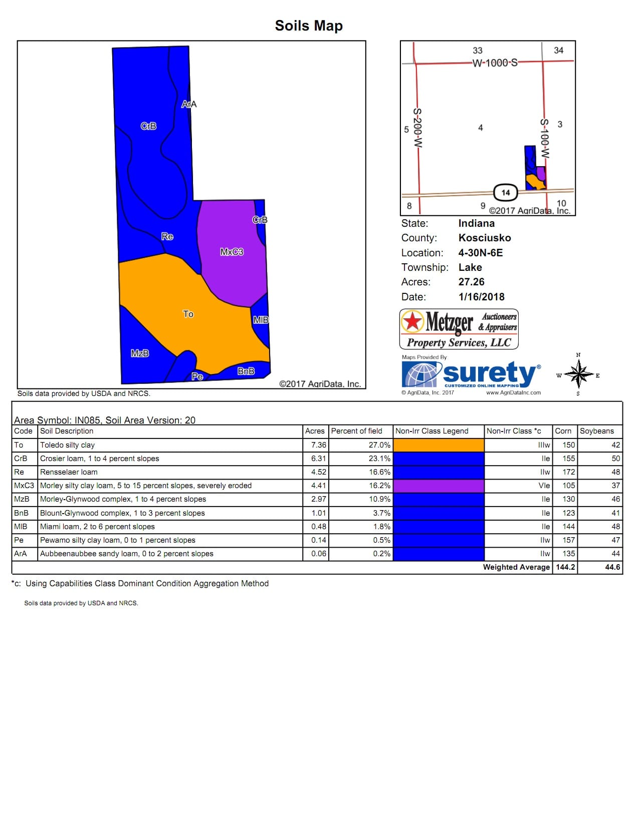 Tract 3 is 28.37 acres of quality tillable cropland with a soils average of: 144.2. Great location, productive soils, irrigation potential!