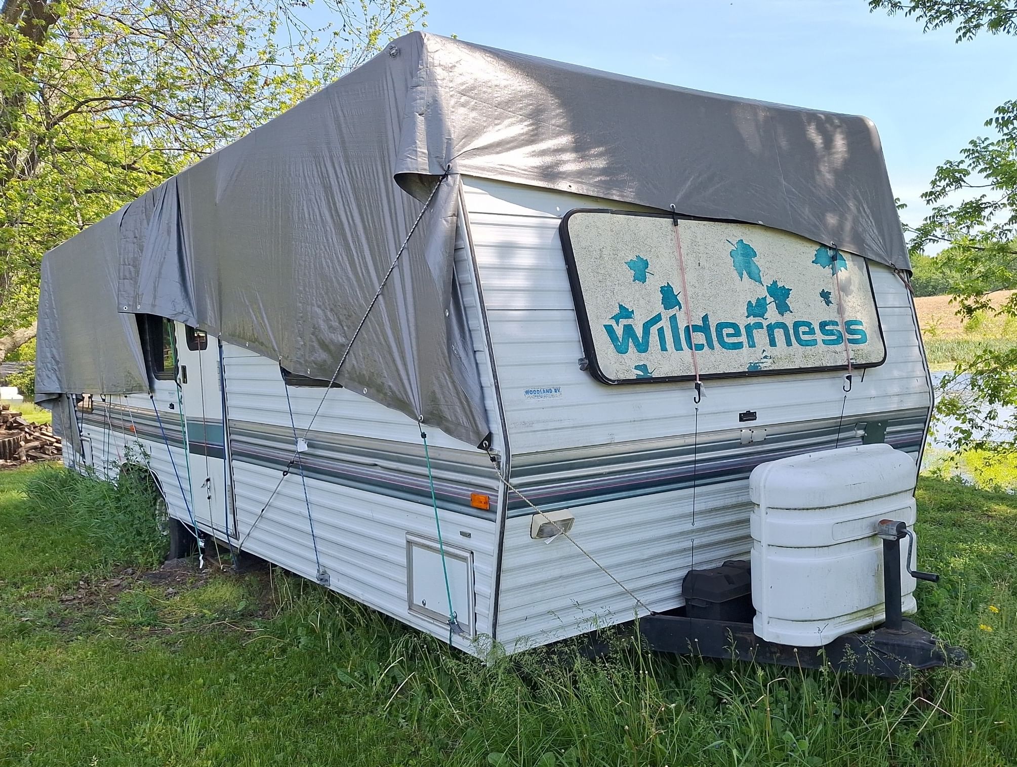 50 1997 Forest River 29' Travel Camper Wilderness Model M-29S RV, roof leaks but has been tarped, floor is solid - VIN 1ED1S2925V4265047 - A $25 TITLE FEE WILL BE ADDED TO THE WINNING INVOICE