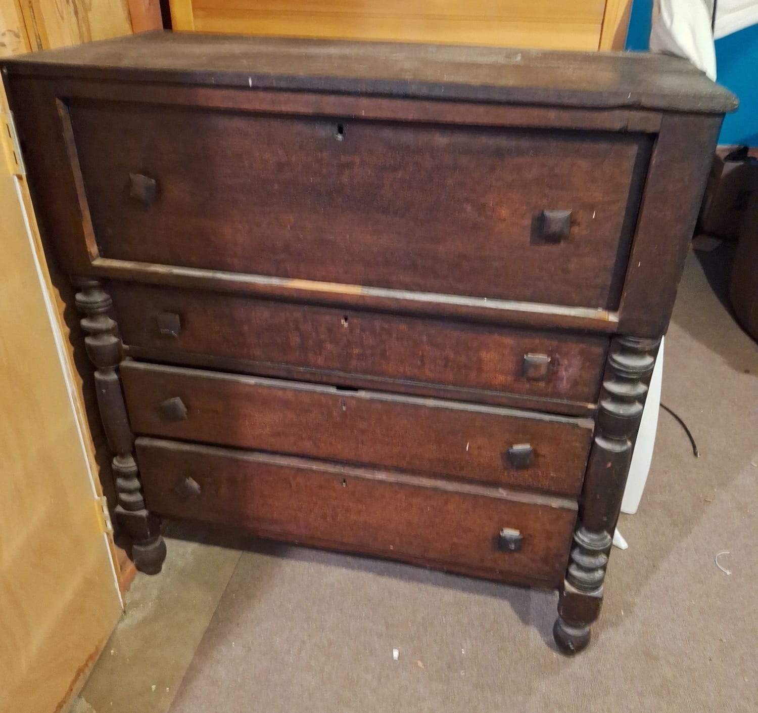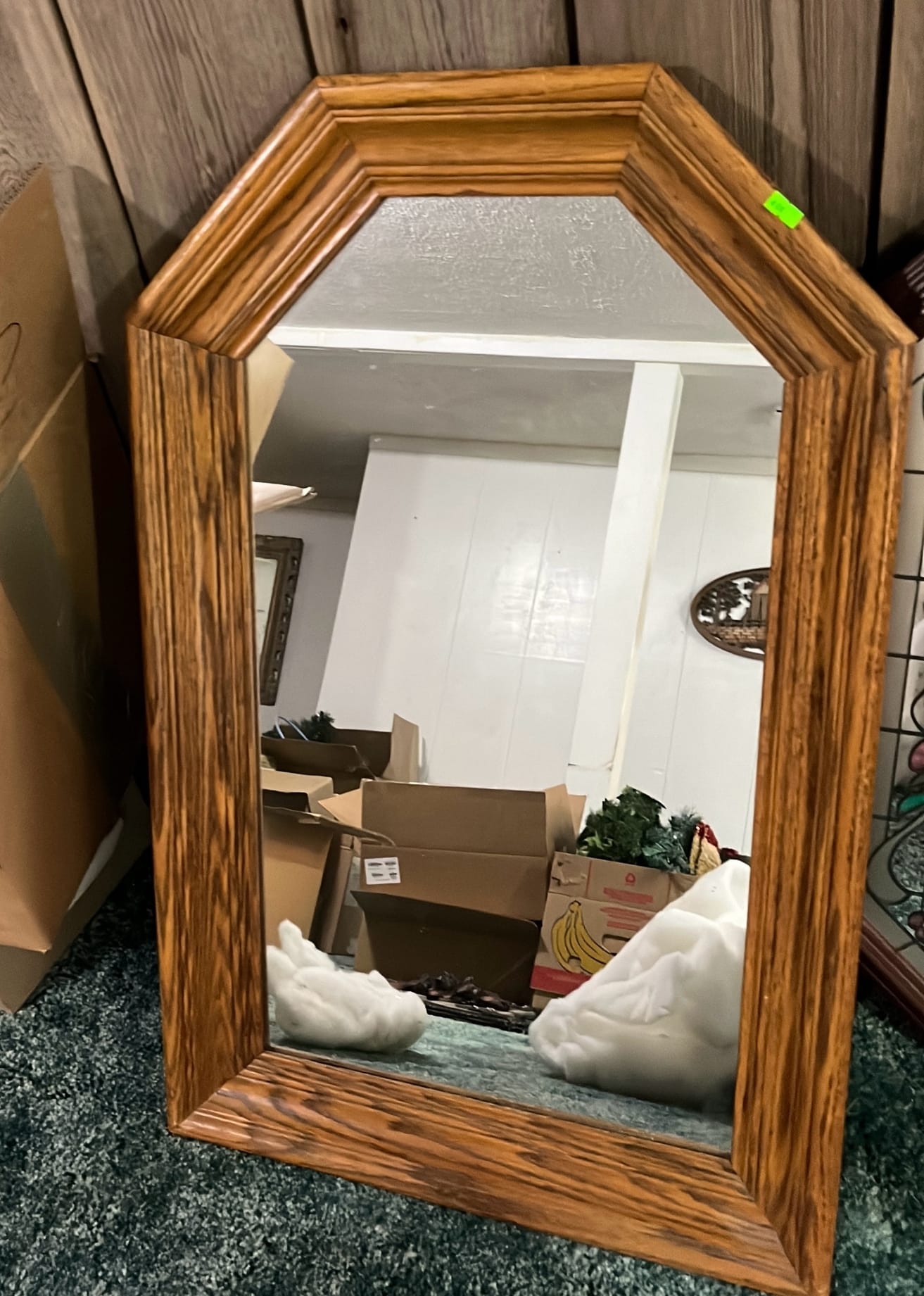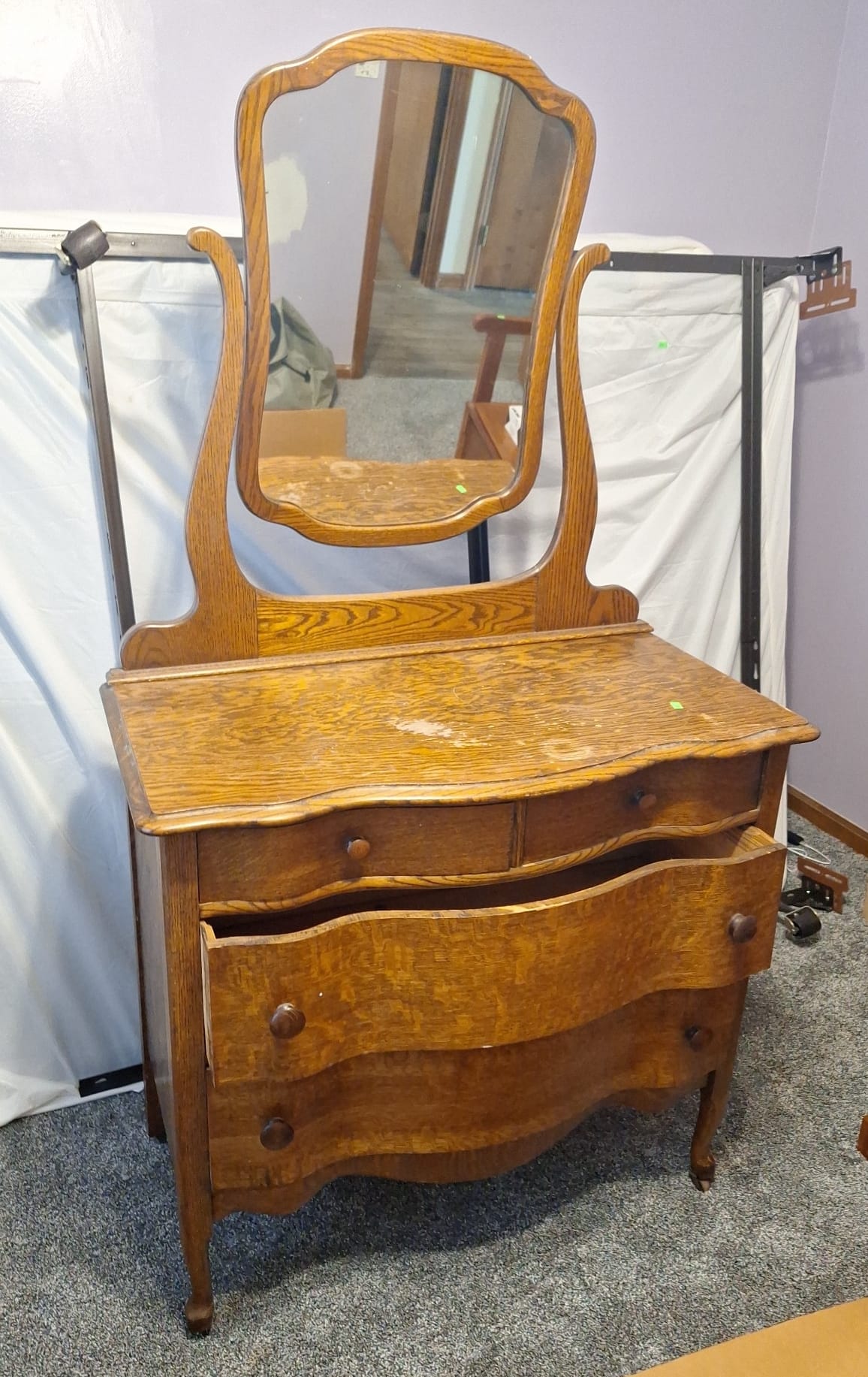 202 Oak Dresser with mirror - has wear - 38x19x70"